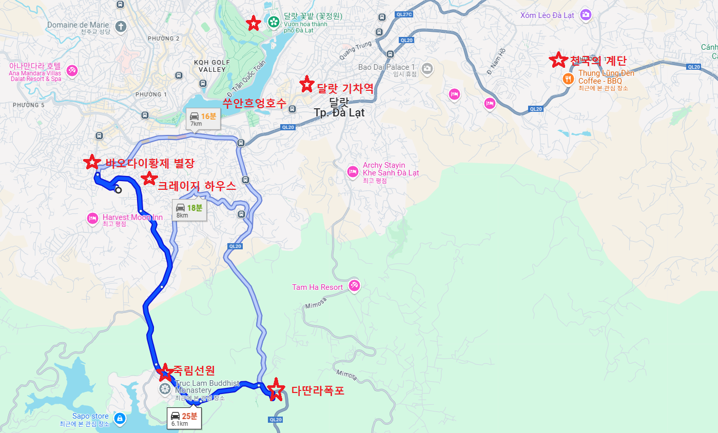 다딴라폭포에서 바오다이황제의 여름별장(제3별궁)으로 출발하는 시간이 4시로 거리가 가깝기 때문에 금방 간다.