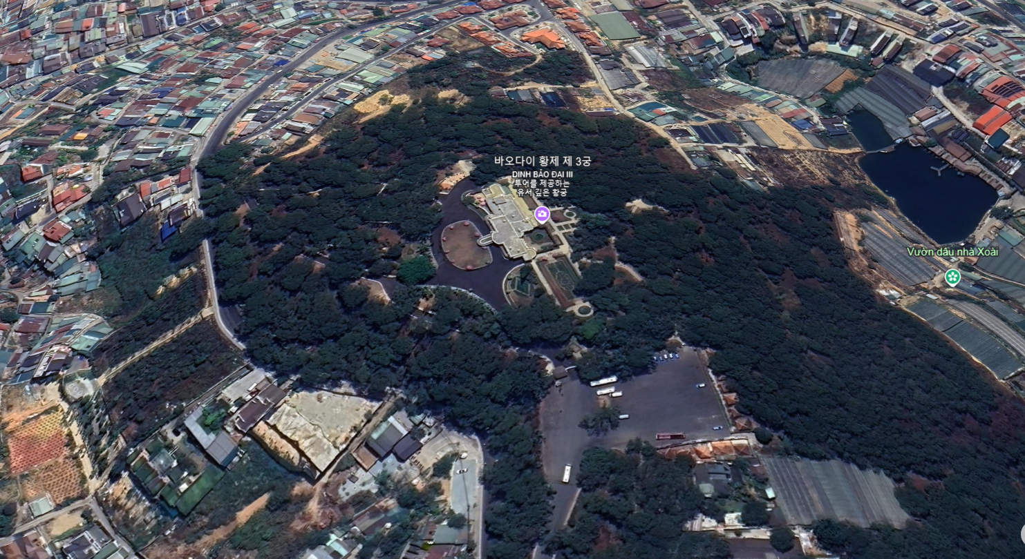 하늘에서 본 바오다이 궁...소나무숲으로 둘러쌓여 있다.