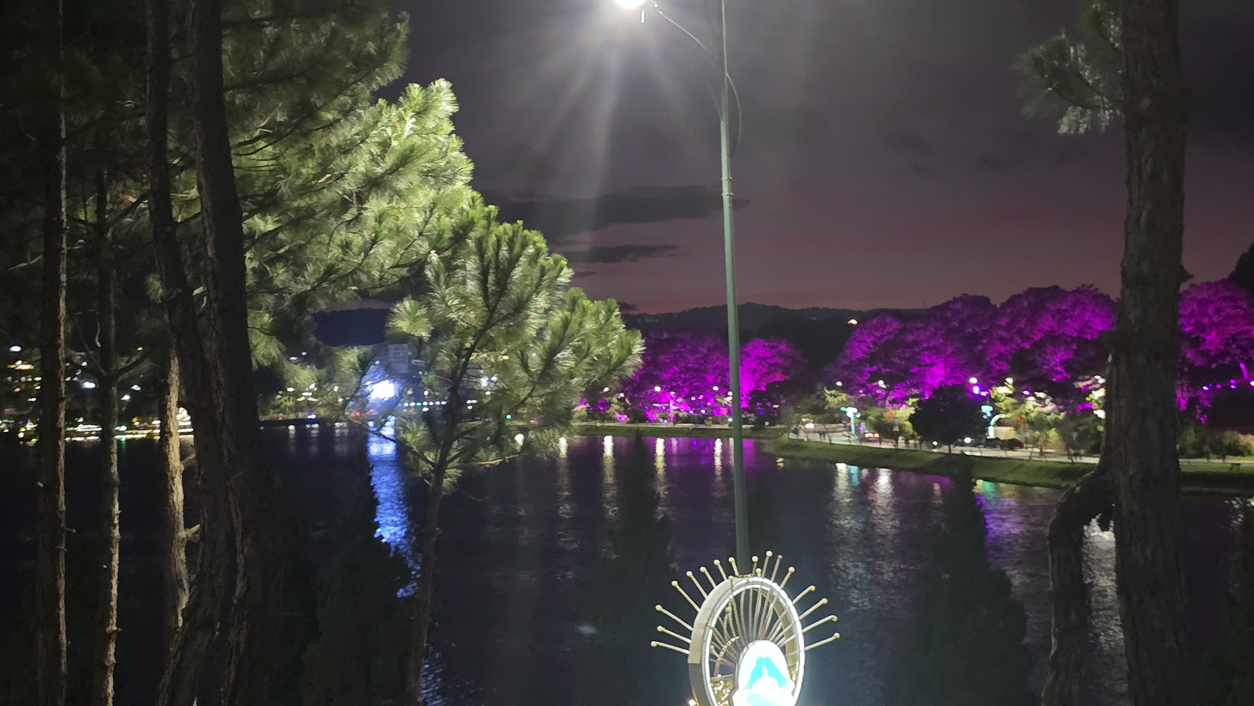 식당으로 가는 길에 보이는 쑤안흐엉호수...조명이 수시로 바뀐다.