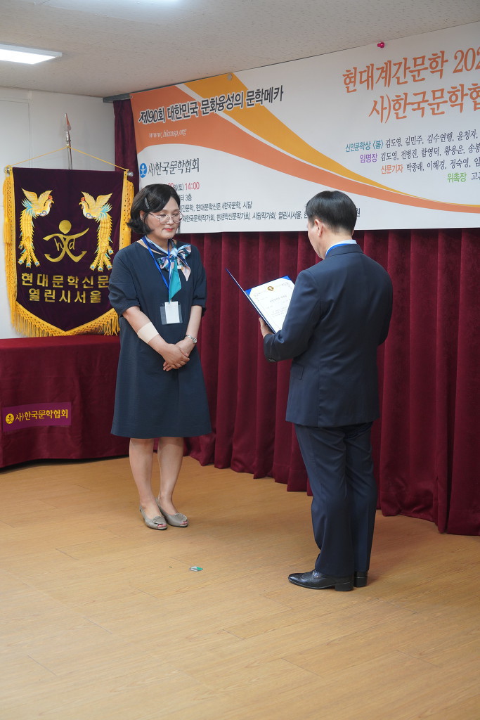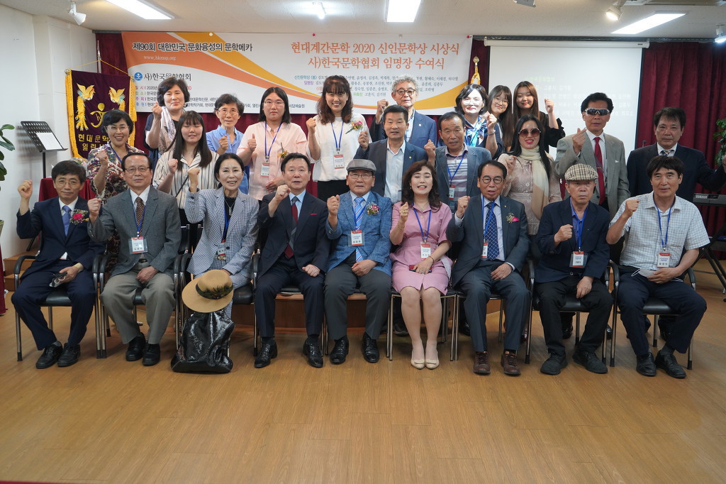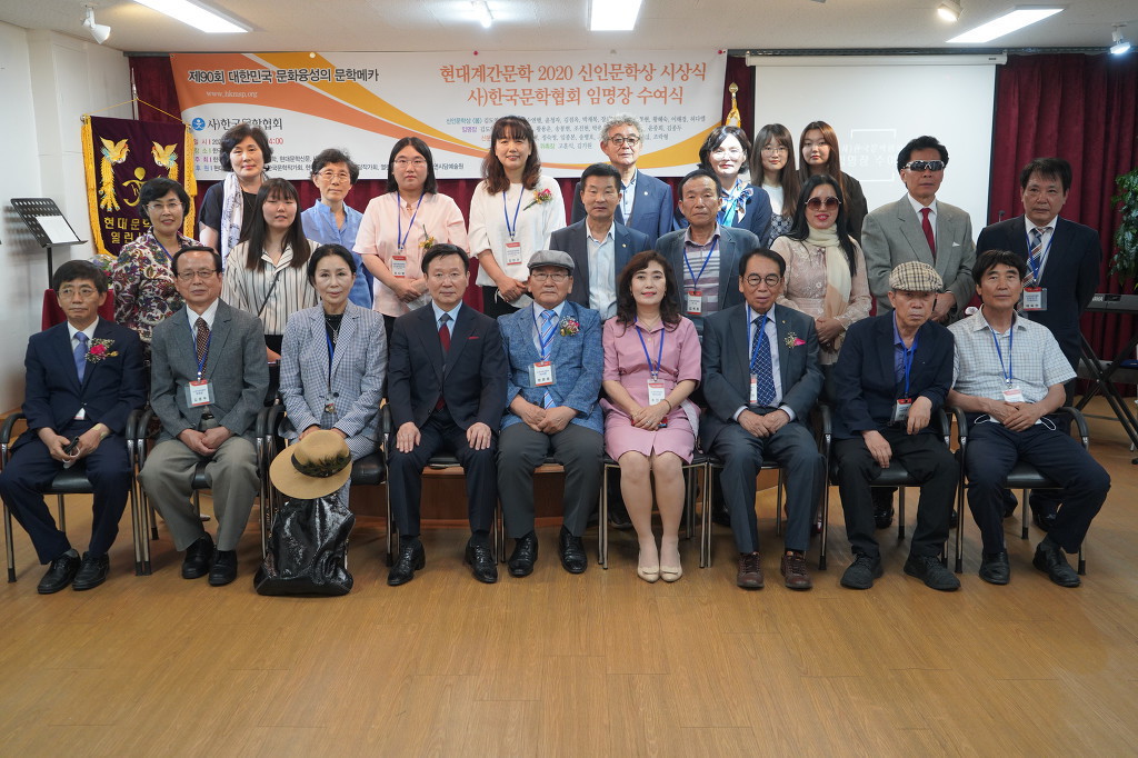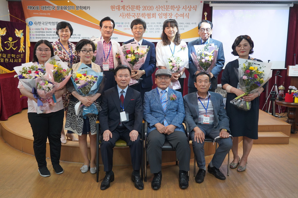 제90회 현대계간문학 2020 봄, 여름 신인문학상 수상식과 사단법인 한국문학협회 임명장 수여식이 2020년 6월 20일(토) 오후 2시 서울 충무로2가 소재 한국문학협회 3층 문화센터에서 개최됐다. 한국문학협회가 1월에 출범을 했지만 그동안 매월 문학특강과 시낭송 행사 개최로 튼튼한 기반을 이뤄 지금의 90회 대한민국 문화융성의 문학메카 행사로 이어지게 된 것이다.