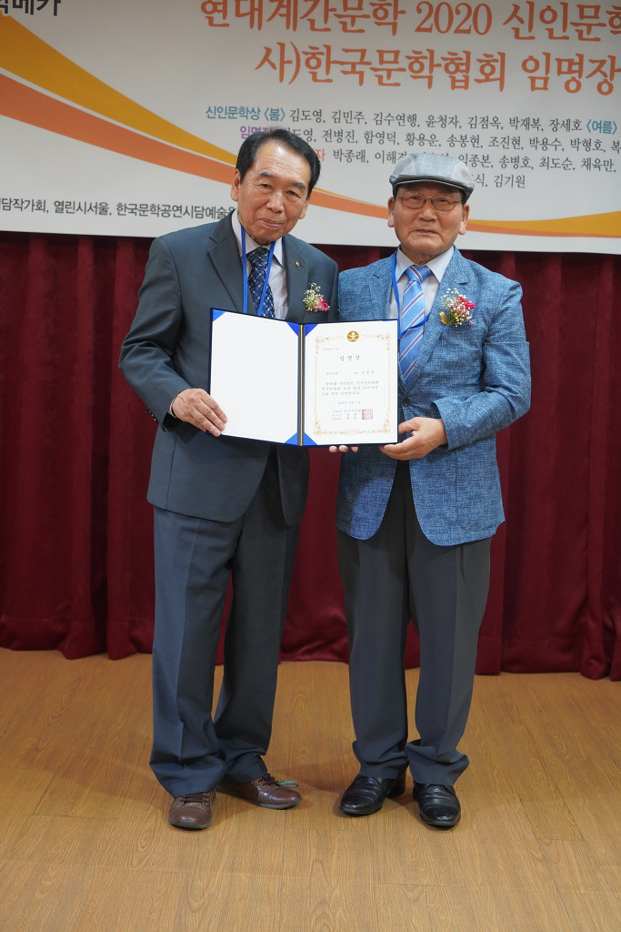 ▲ 현대계간문학 2020 봄호 수필부문수상자 - 장세호