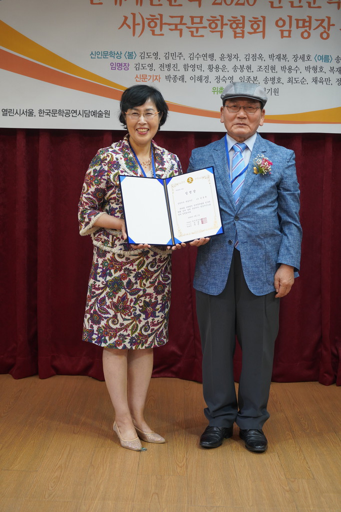 2020 봄호 수상자로는 시부문 : 김도영, 김민주, 김수연행, 윤청자 / 수필부문 : 김점옥, 박재복, 장세호 총7분이고, 2020 여름호 수상자는 평론부문 : 송봉현 / 수필부문 : 황혜숙, 이해경 / 시부문 : 허다엘 총4분이다. 참석이 어렵다고 전해오신 <김점옥,박재복,윤청자,황혜숙> 님은 ‘심사위원님들께 감사드리고, 앞으로 꾸준한 작품 활동으로 뵙겠다’는 메시지를 보내왔다.