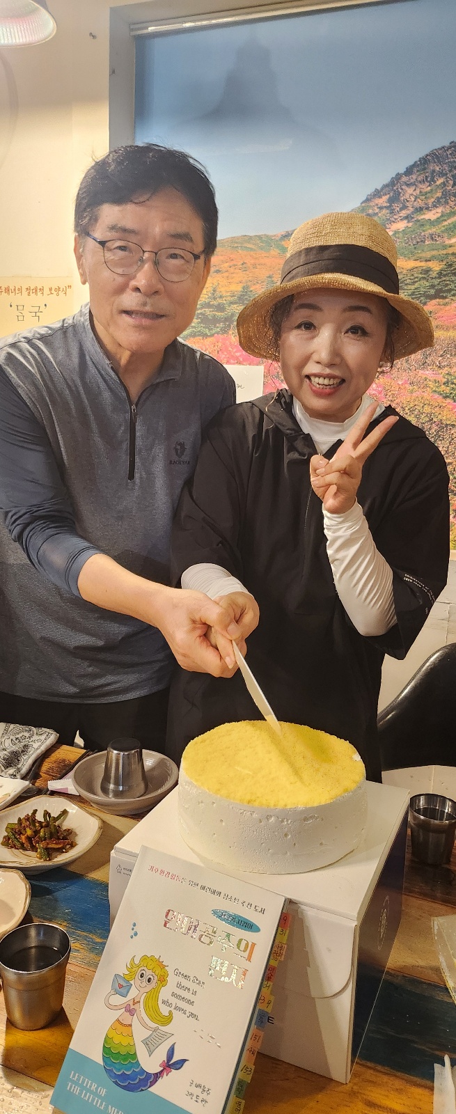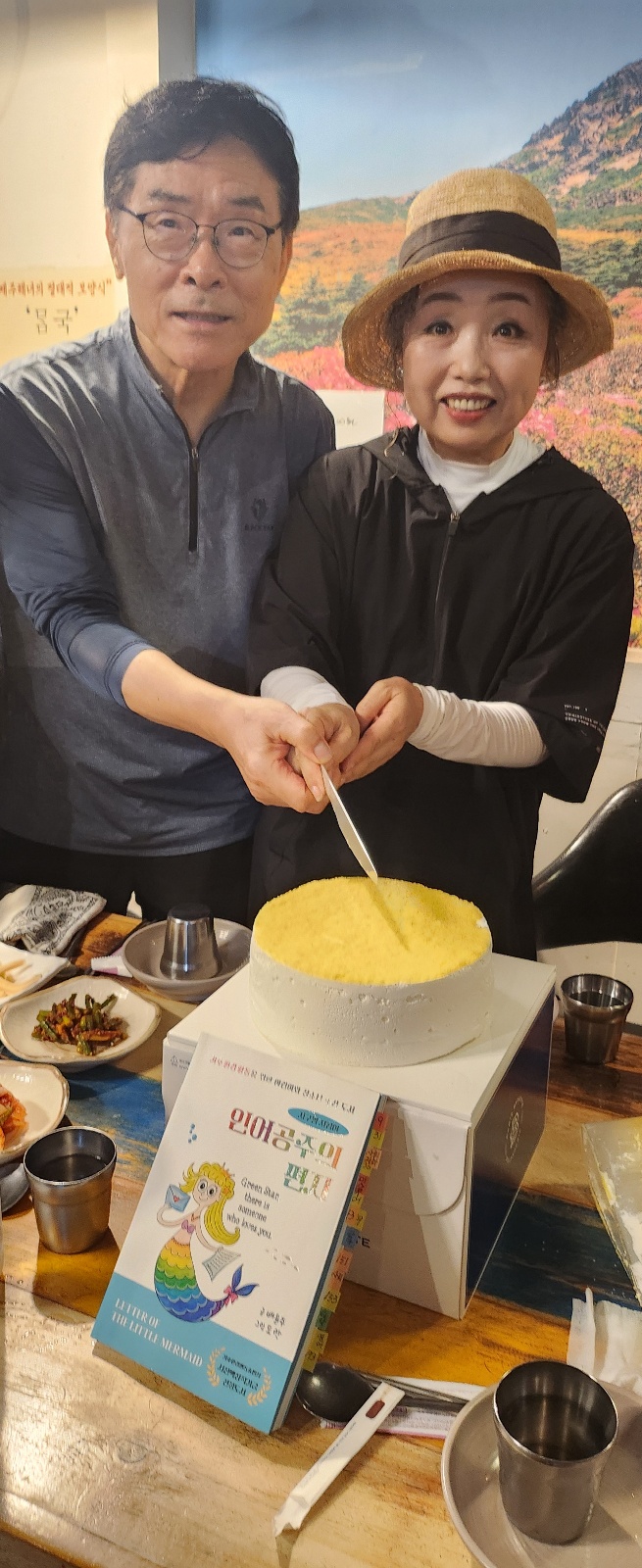 뒷풀이 식사에서는 이병룡회장님과 배윤주 시인의 케익 커팅이 있었으며 축하하는
