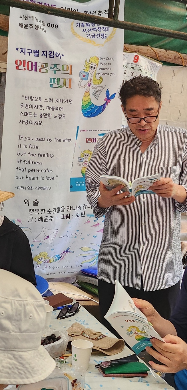 작성자배윤주 작성시간 25.09.11 관악산 입구부터 쏟아진 소나기를 수처례 피하며 도착한 산중 원두막 에서 빗소리를 뚫고 모두들 <인어공주의편지>를 한편씩 낭송해주시는 시인분들의 사랑과 응원에 감사드립니다. 현수막과 축하케잌까지 세심하게 준비해주신 문대표님과 이대장님,임총무님, 촬영에 전념해주신 박유정 작가님, 특별히 행운의2$ 준비해주신 조박사님 등등 모두 감사드립니다!♡♡♡