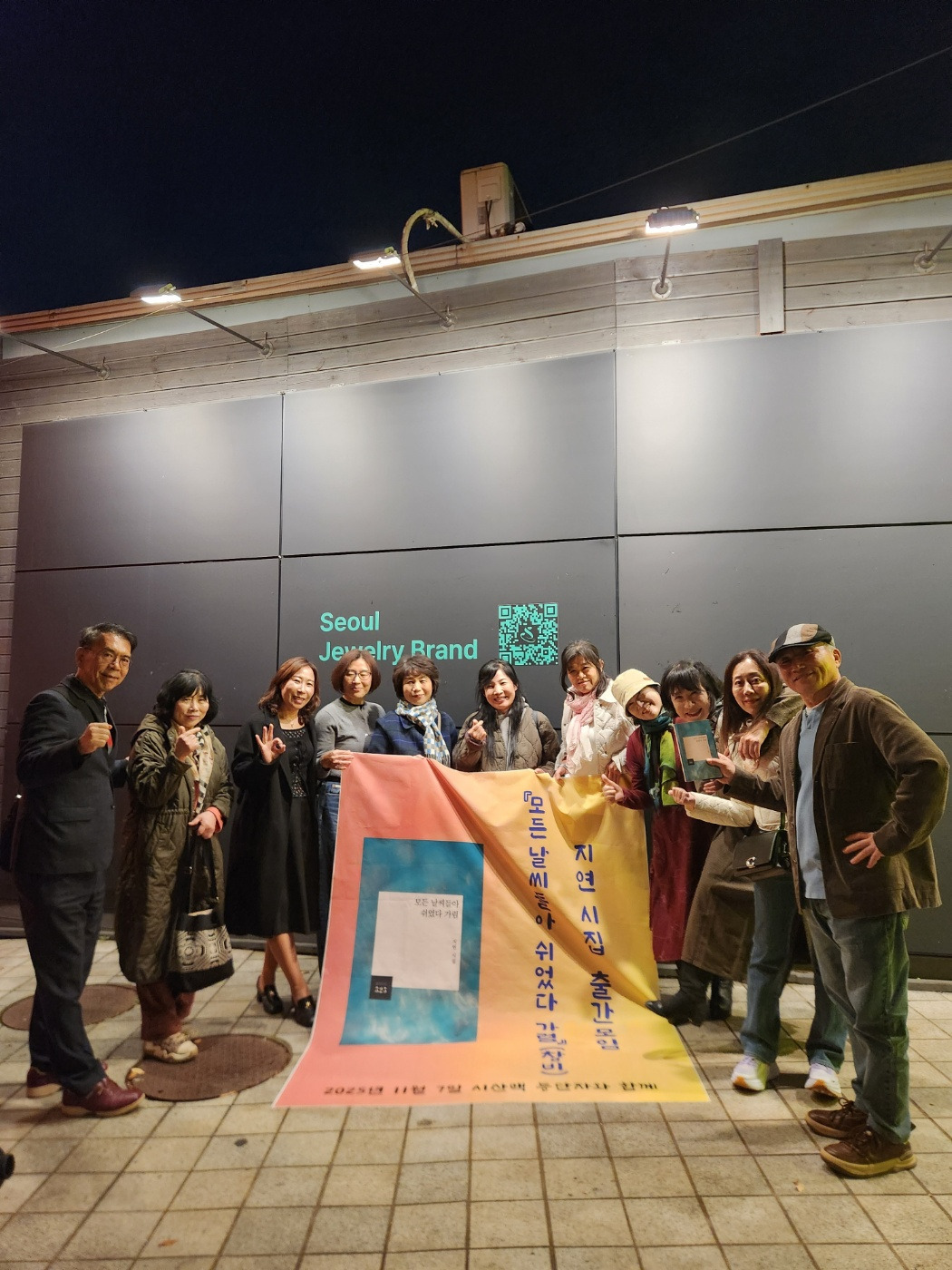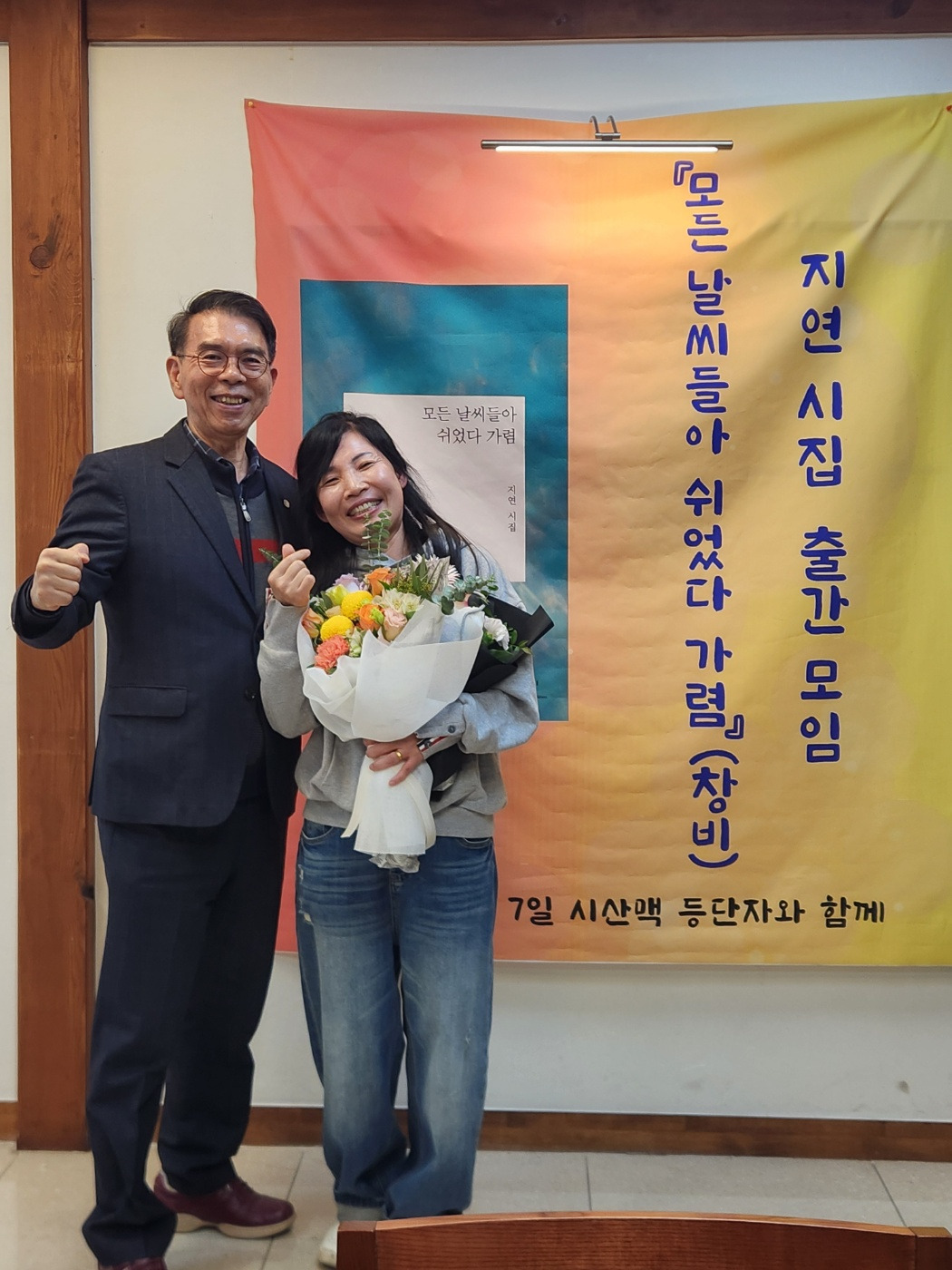 지연 시집 <모든 날씨들아 쉬었다 가렴>(창비) 출간모임 - 시산맥 등단자와 함께 작성자시산맥|작성시간25.11.09|조회수129 목록 댓글 0 글자크기 작게가 글자크기 크게가 다음검색 현재 게시글 추가 기능 열기 북마크 신고 센터로 신고 댓글 댓글 0 댓글쓰기 댓글 리스트
