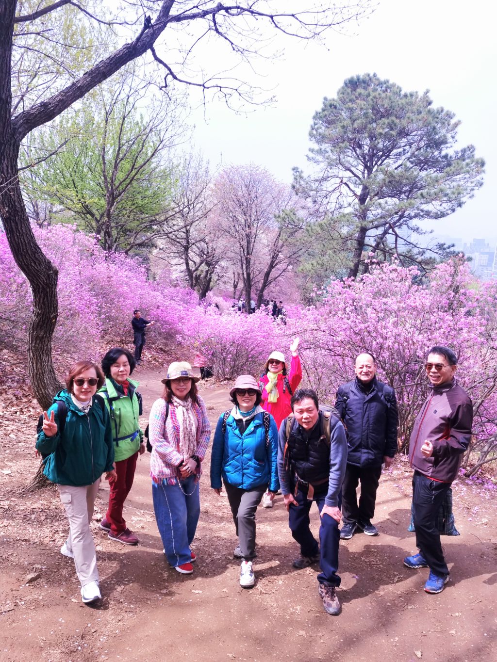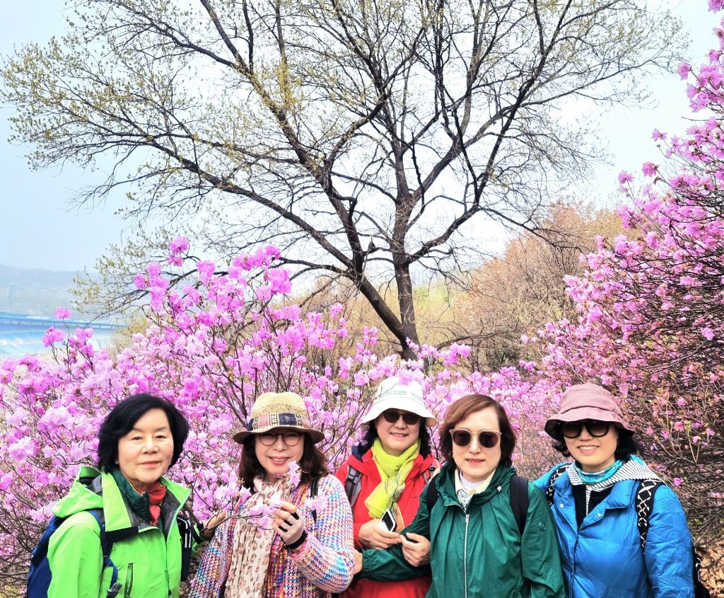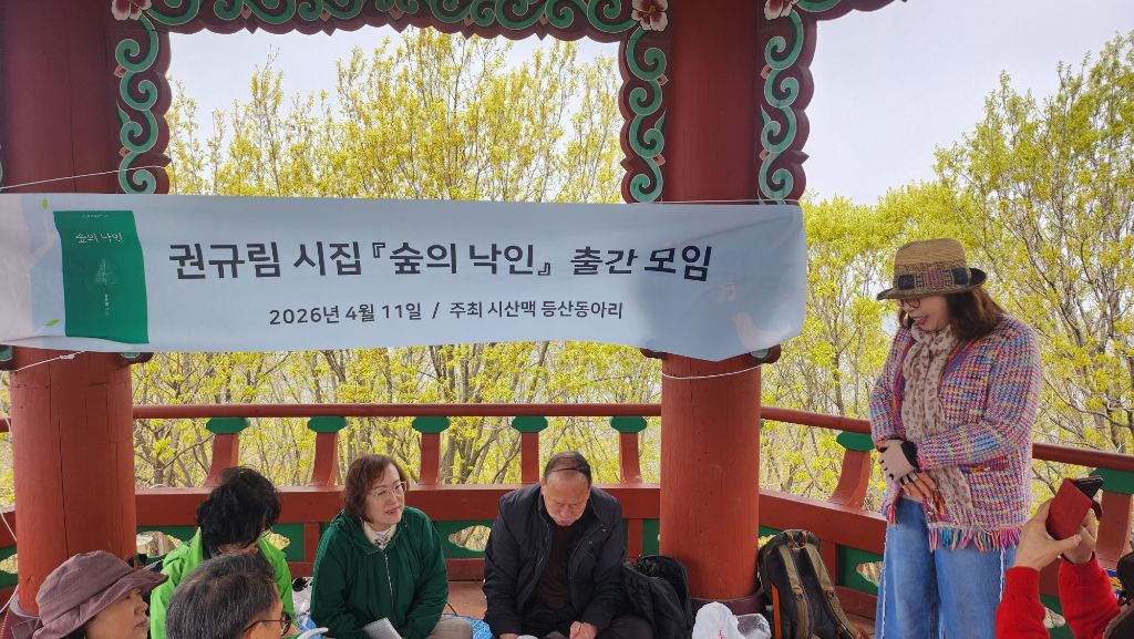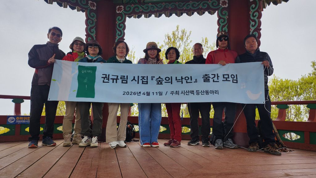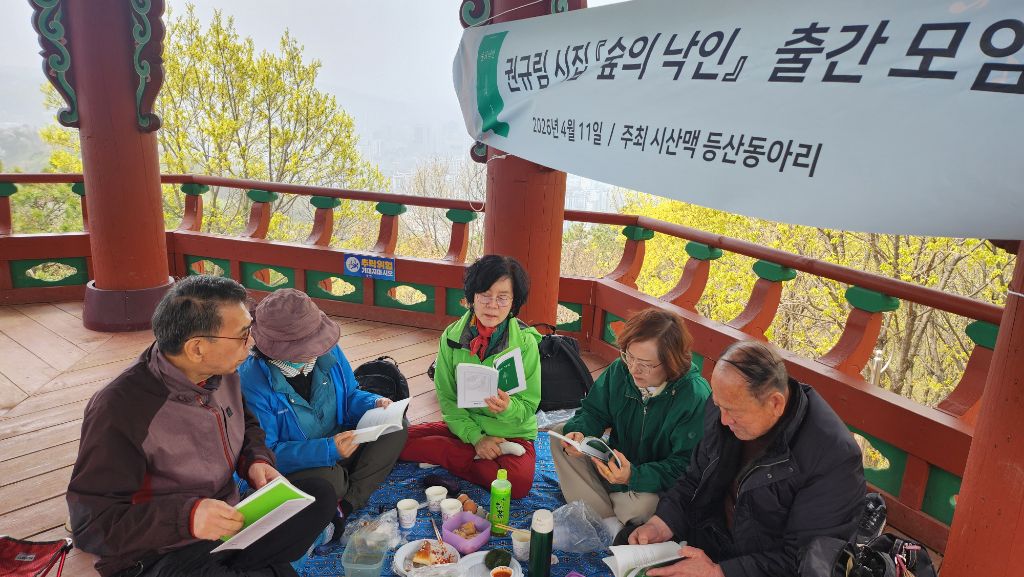 분홍빛 진달래로 가득한 원미산 꽃동산에서 시산맥 회원님들의 즐거운 산행이 있었습니다. 특히 이번 산행은 등산동아리 회원이신 권규림 시인님의 시집 <숲의 낙인> 발간을 축하하는 뜻깊은 자리이기도 했습니다.