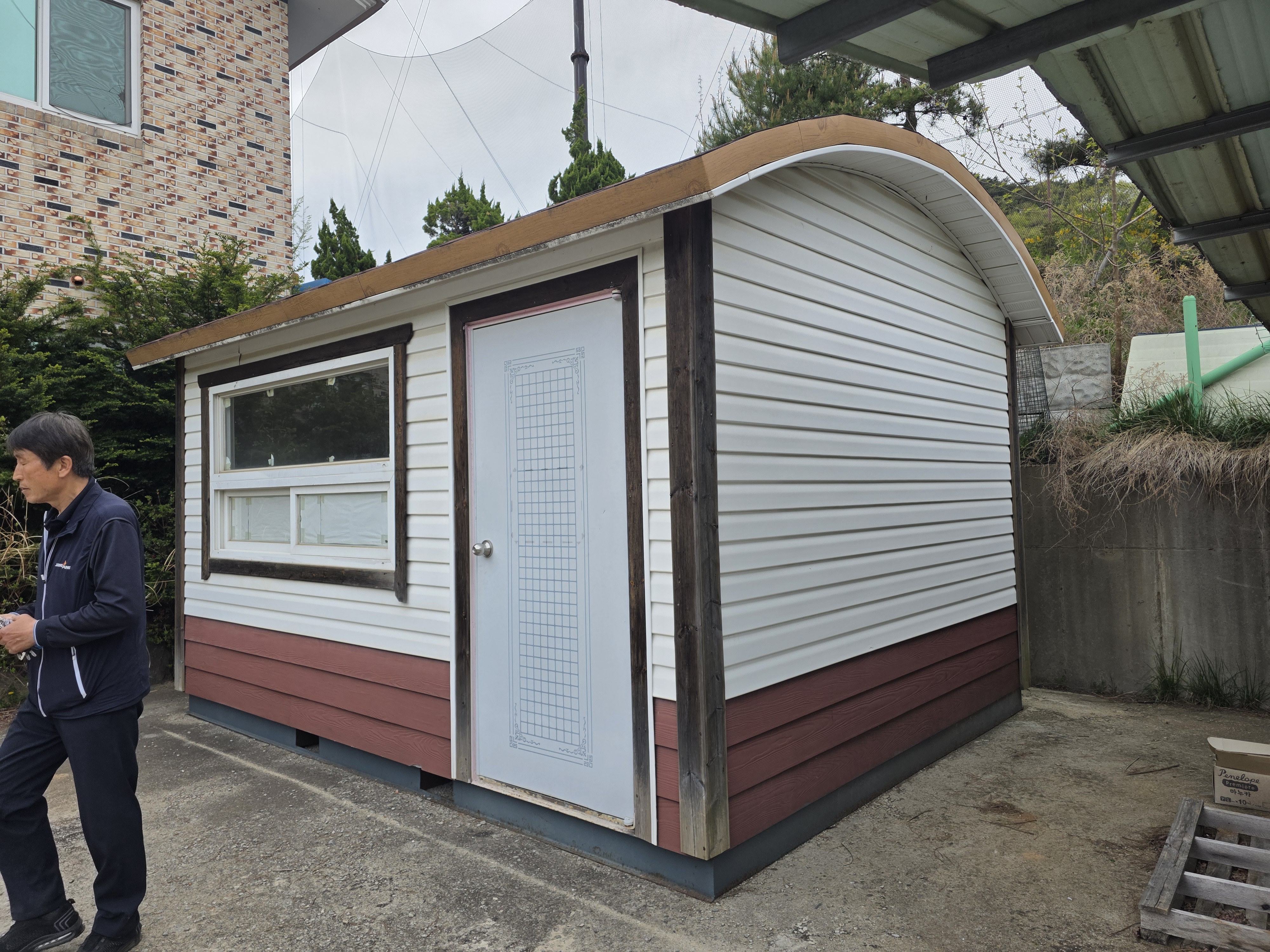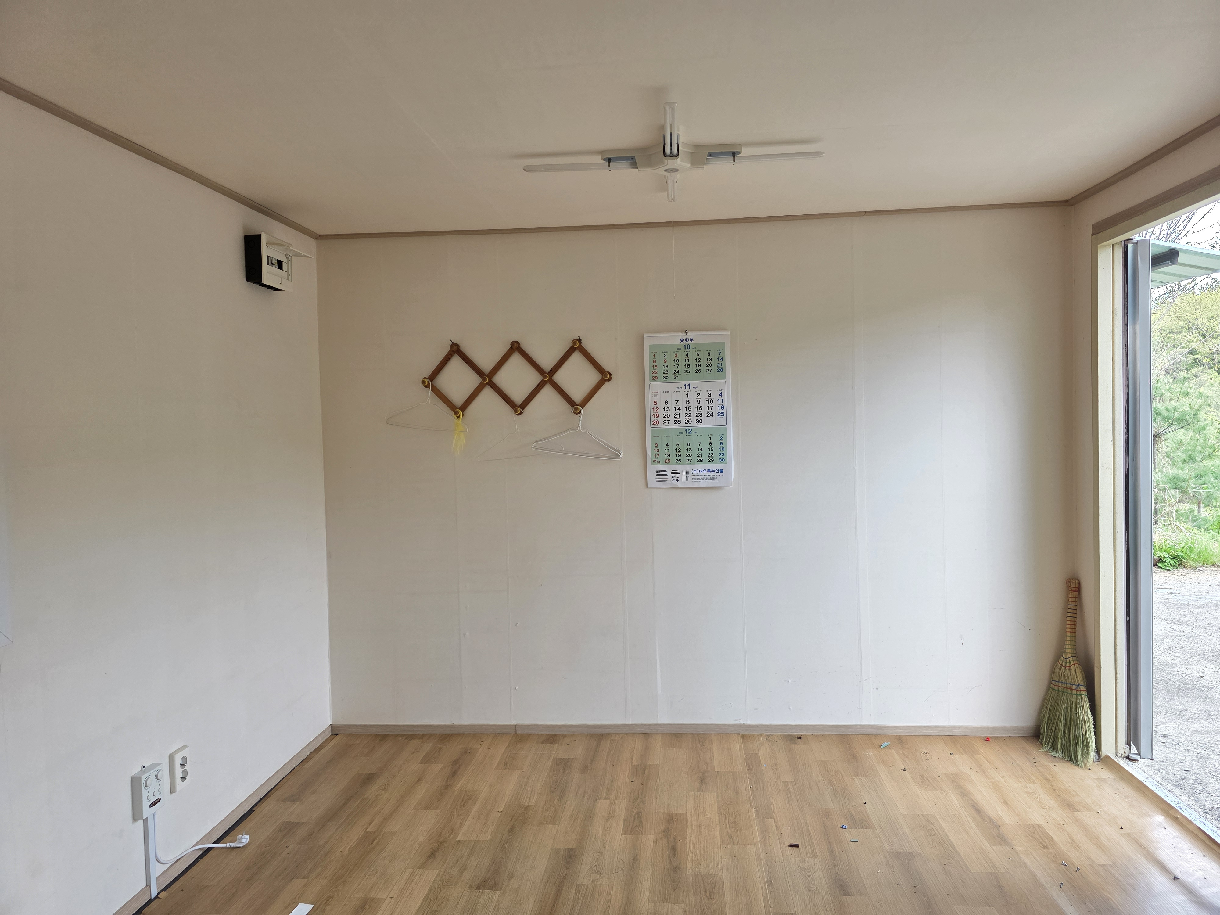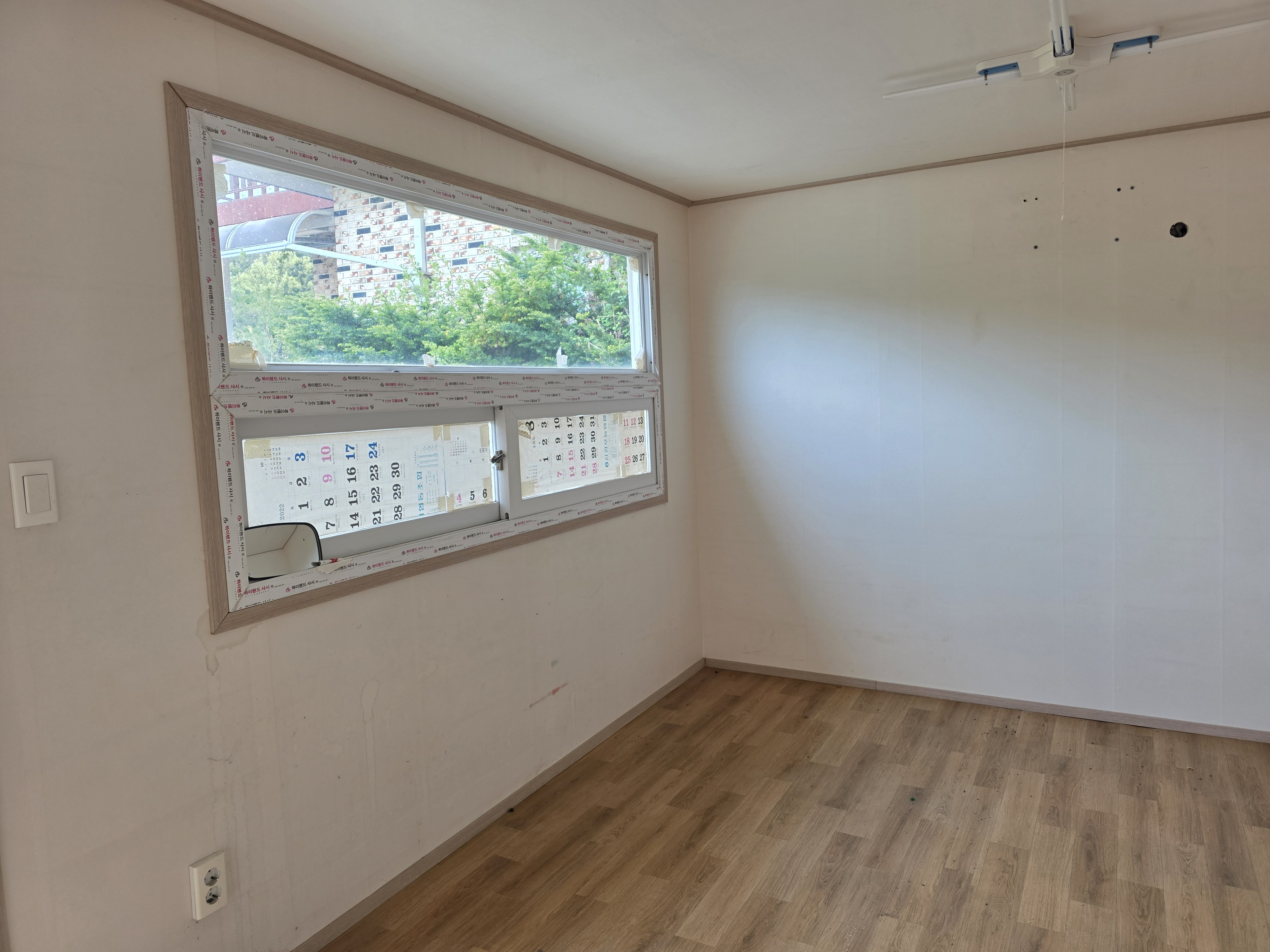 전면통창 뒷면으로도 창 1개 있어 사무실 직원휴계실 농막용으로 좋습니다