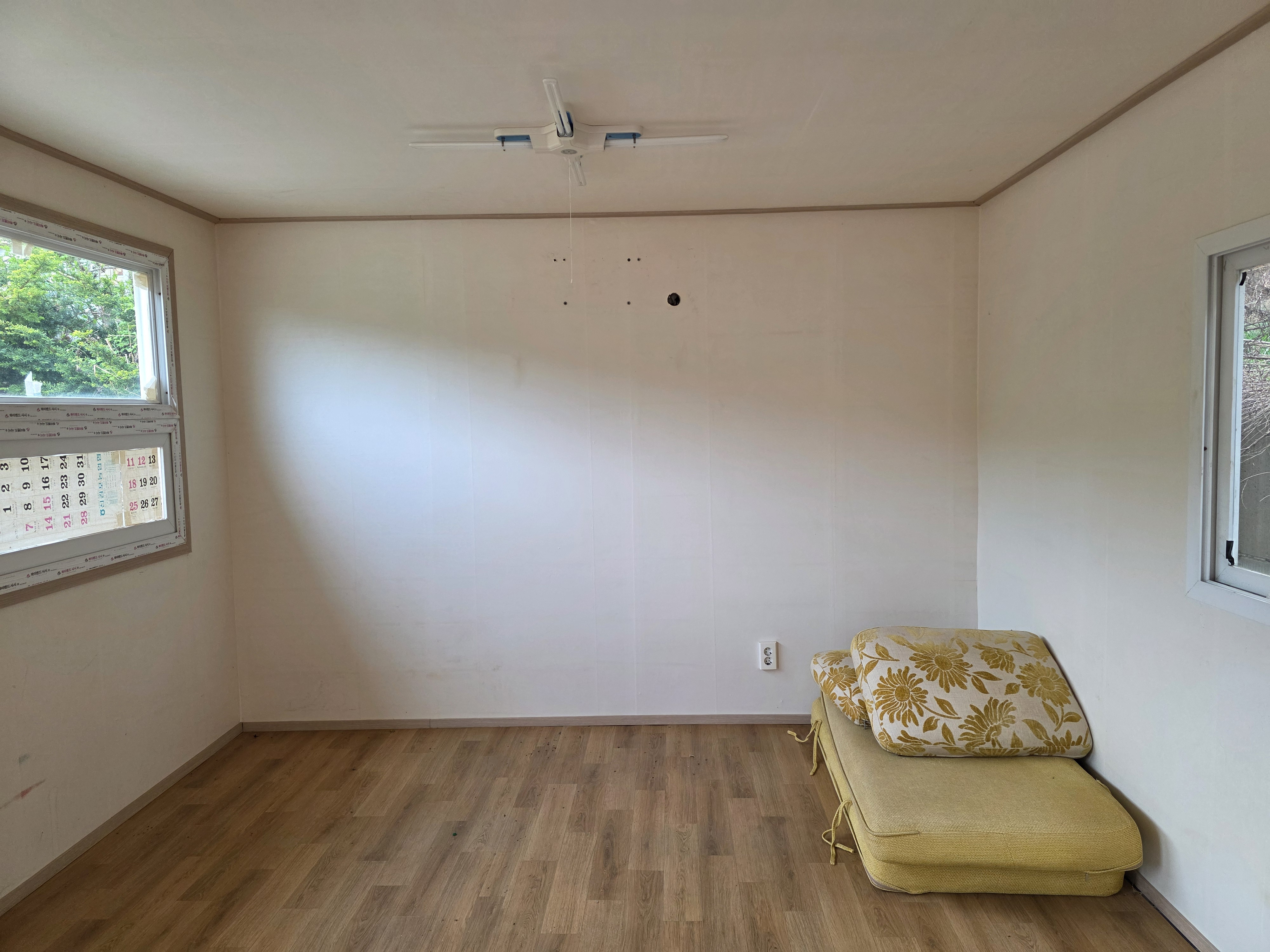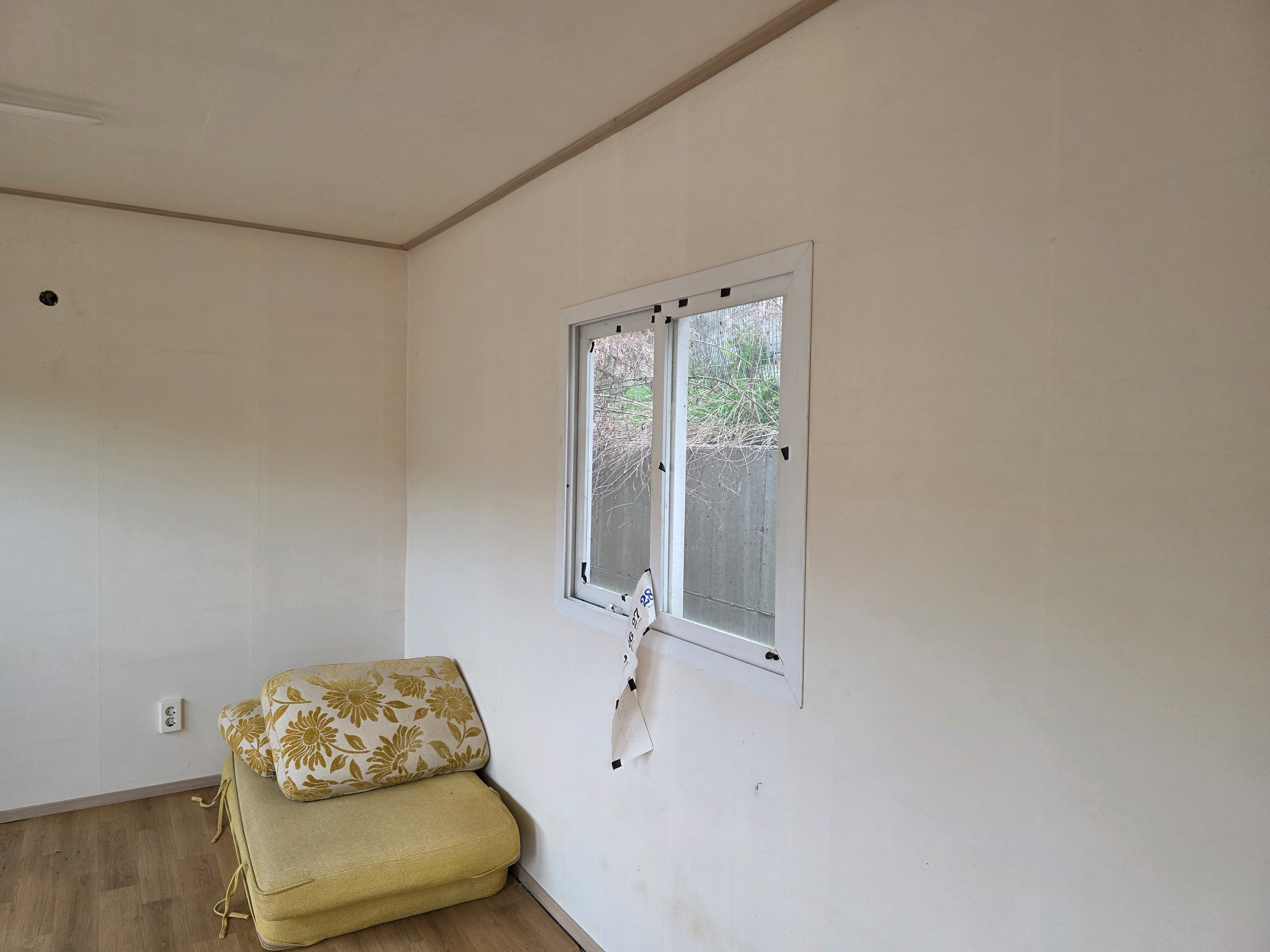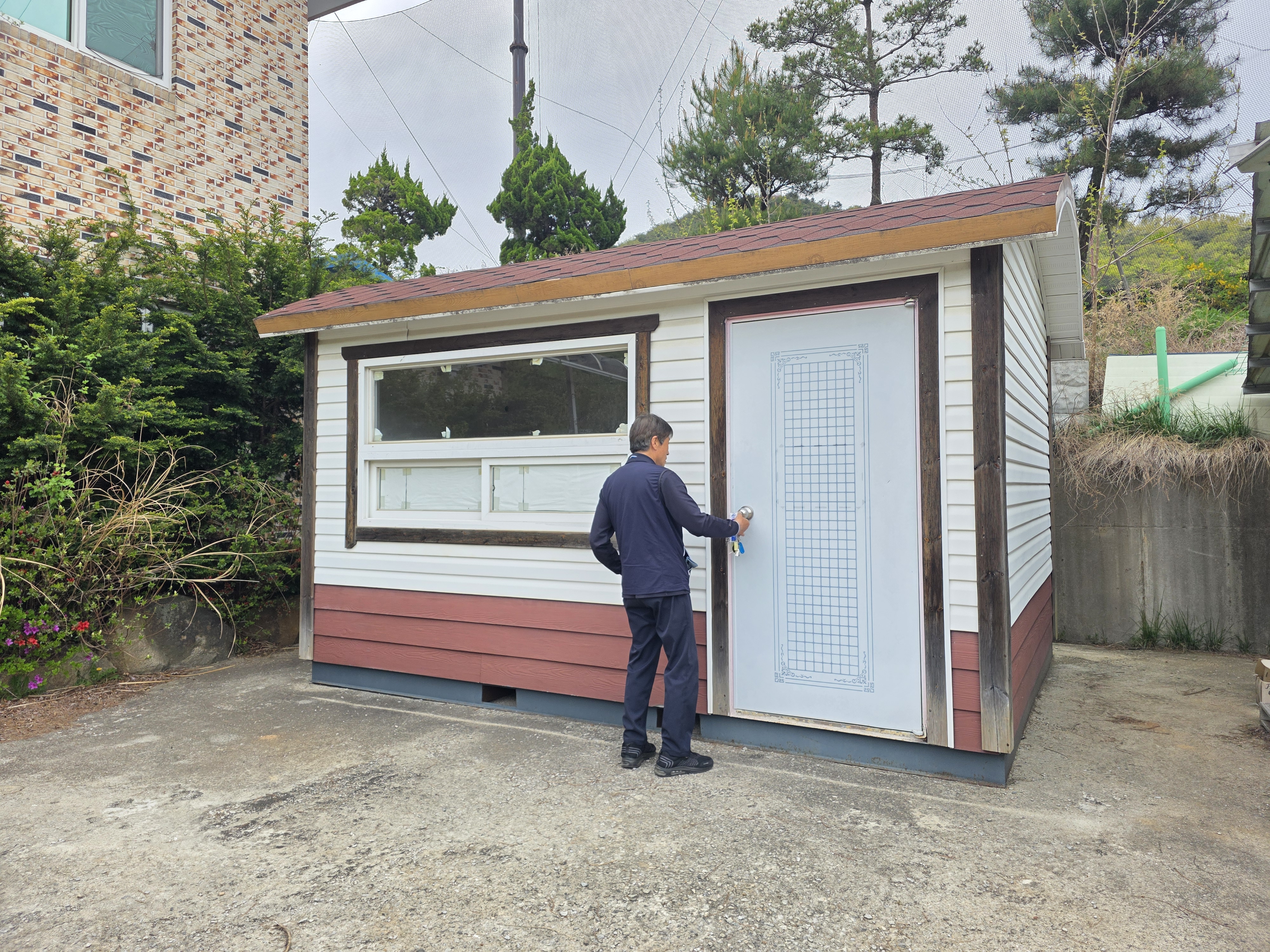 전면통창 뒷면으로도 창 1개 있어 사무실 직원휴계실 농막용으로 좋습니다
