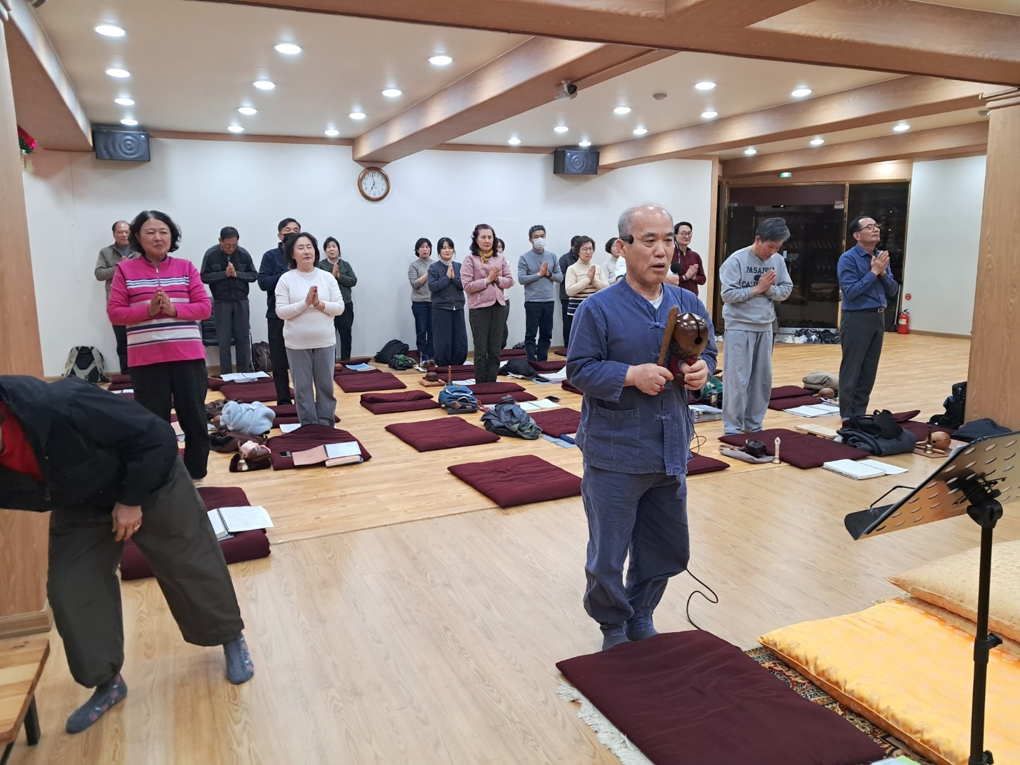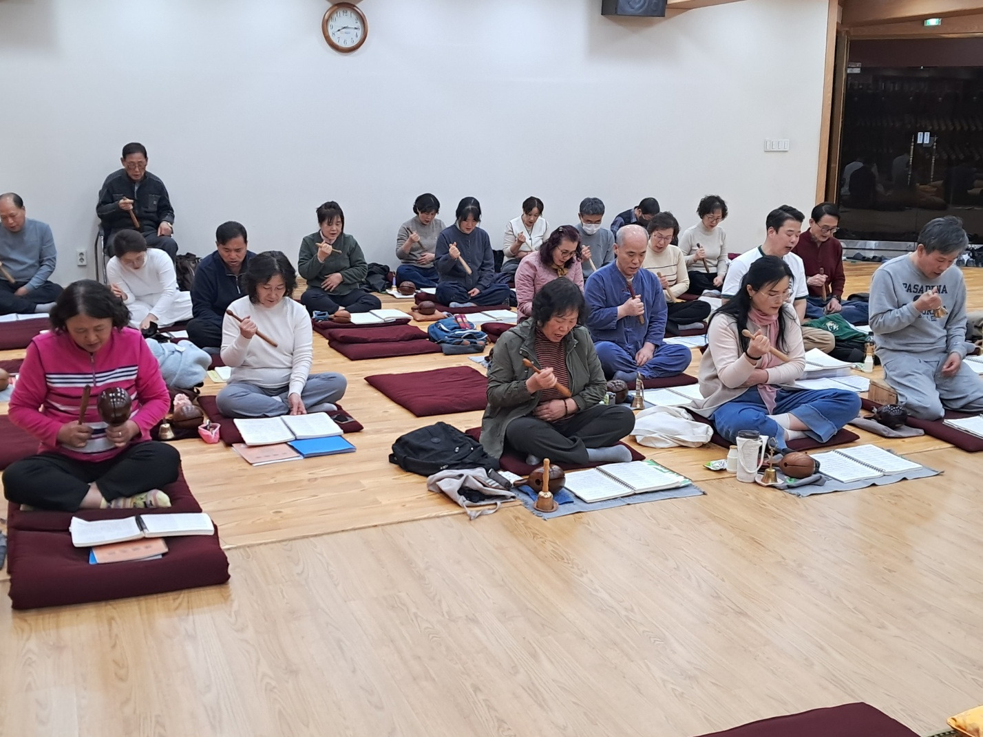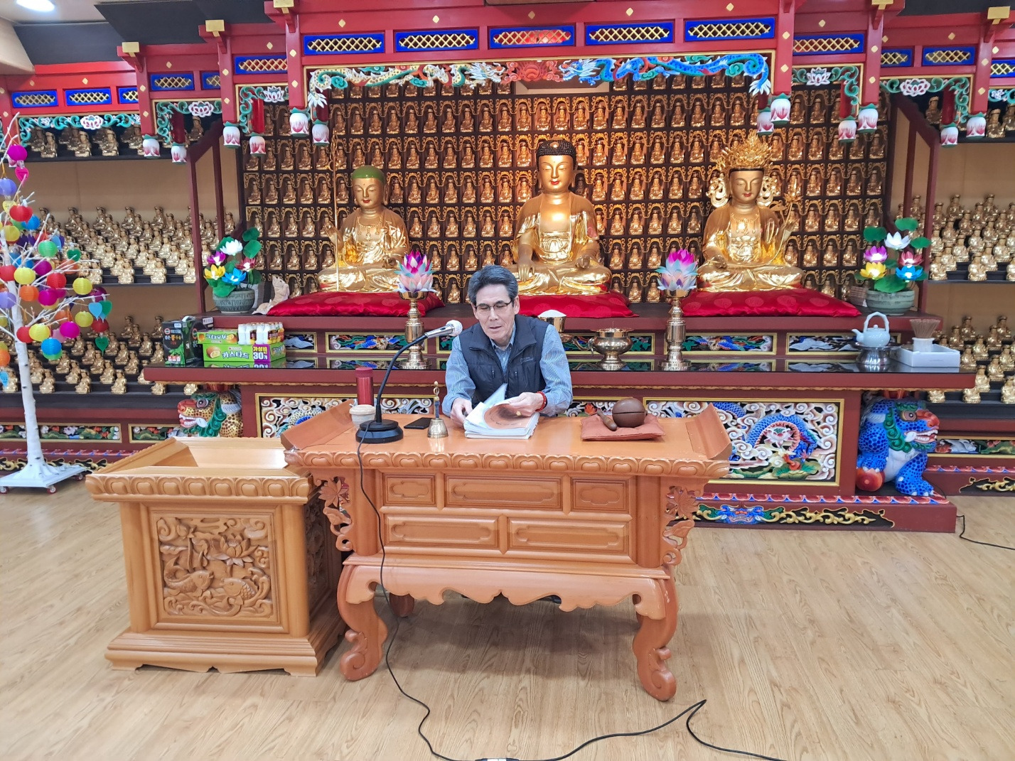 | <염불의식> * 일시 : 2026년 3월 26일(목) 19:00 ~ 21:20. * 장소 : 만불보전(6층). * 집전 : 수련팀 금산(28). 우리말 오분향게, 칠정례, 우리말반야심경, 전통 사홍서원. * 강의 : 대경(14/교육위원장) * 동참자 : - 백련팀 : 6명 향정(25,팀장), 자인행(25,총무), 대경(14/교육위원장), 청인(19), 혜림지(26), 우담화(30) - 보련팀 : 8명 원진(25,팀장), 무량수(28/총무), 해진(21), 법초(24), 무상덕(25), 보각(28), 여진화(28), 선재(30). - 수련팀 : 5명 여래심(27/팀장), 묘각행(28,총무) 월인심(21/총괄팀장), 금산(28), 관음심(30). - 일련팀 : 2명 연화행(25,팀장), 자재심(25) - 청련팀 : 3명 추정(21,팀장), 원각심(25), 법등행(30) - 홍련팀 : 3명 무상행(24,팀장), 용천(28,수석총무), 각성(21) 불기 2570년 3월 네째주 대경 교육위원장님 강의로 의식습의를 하였습니다. 습의내용은 관음시식을 전반적으로 복습하였고 상용연반을 강의 하셨습니다. 열정적으로 강의해주신 대경 교육위원장님, 감사드립니다. 습의에 참석해주신 선배님 후배님 여러분 감사드립니다. 예불 집전하시는 금산님 강의 하시는 대경 교육위원장님 |