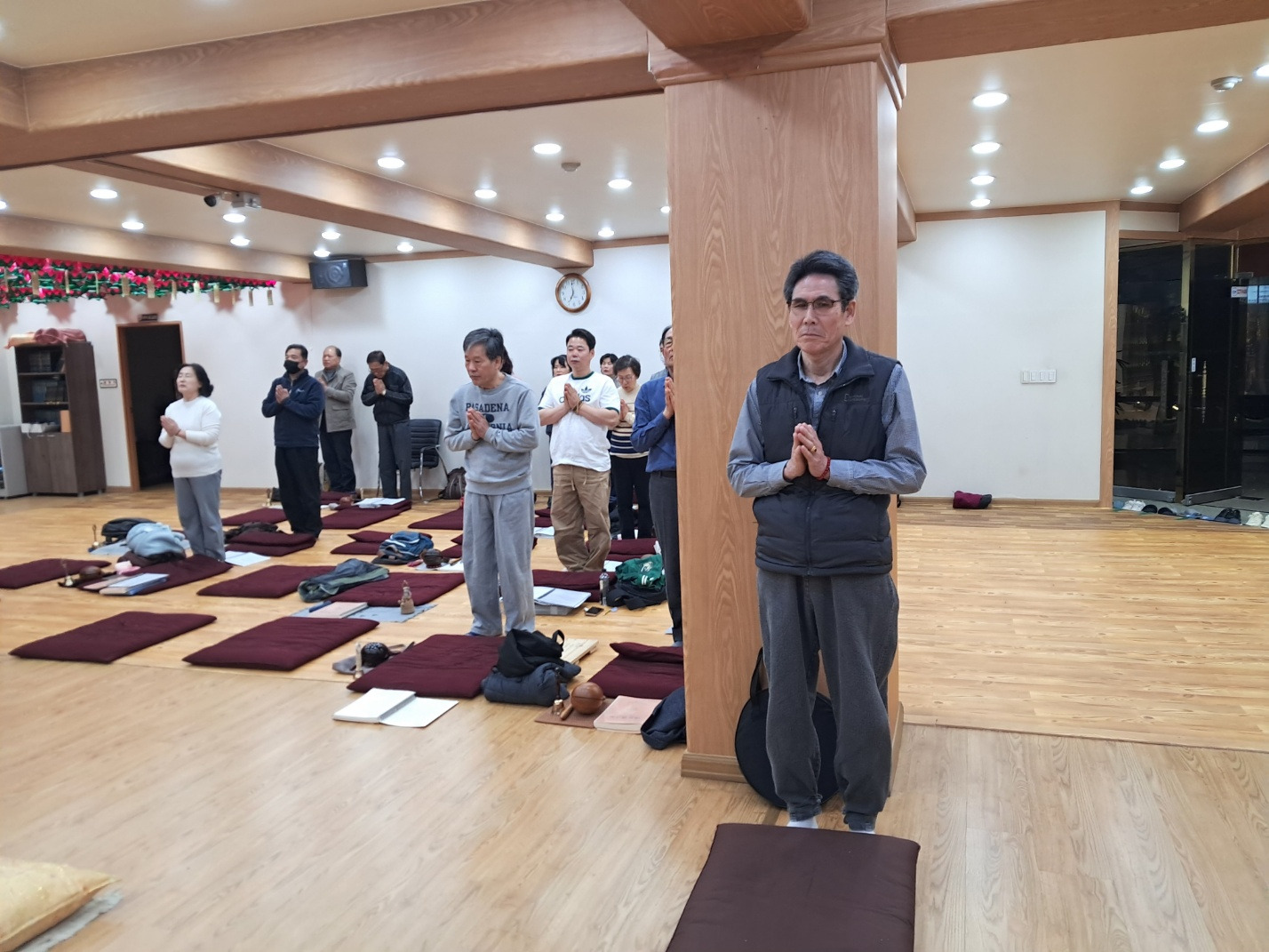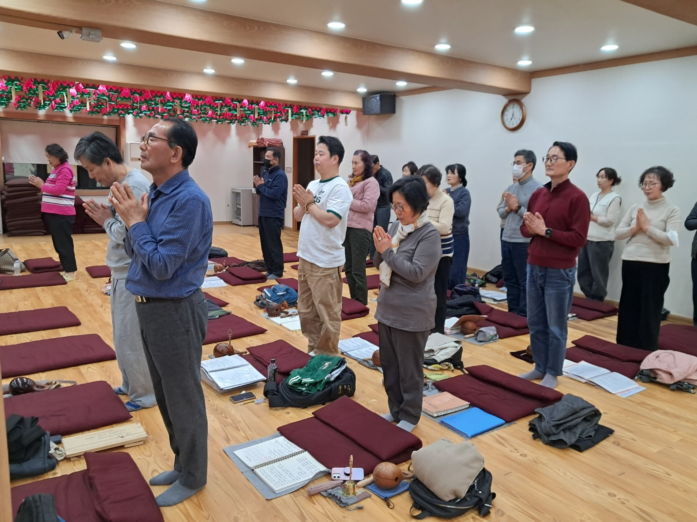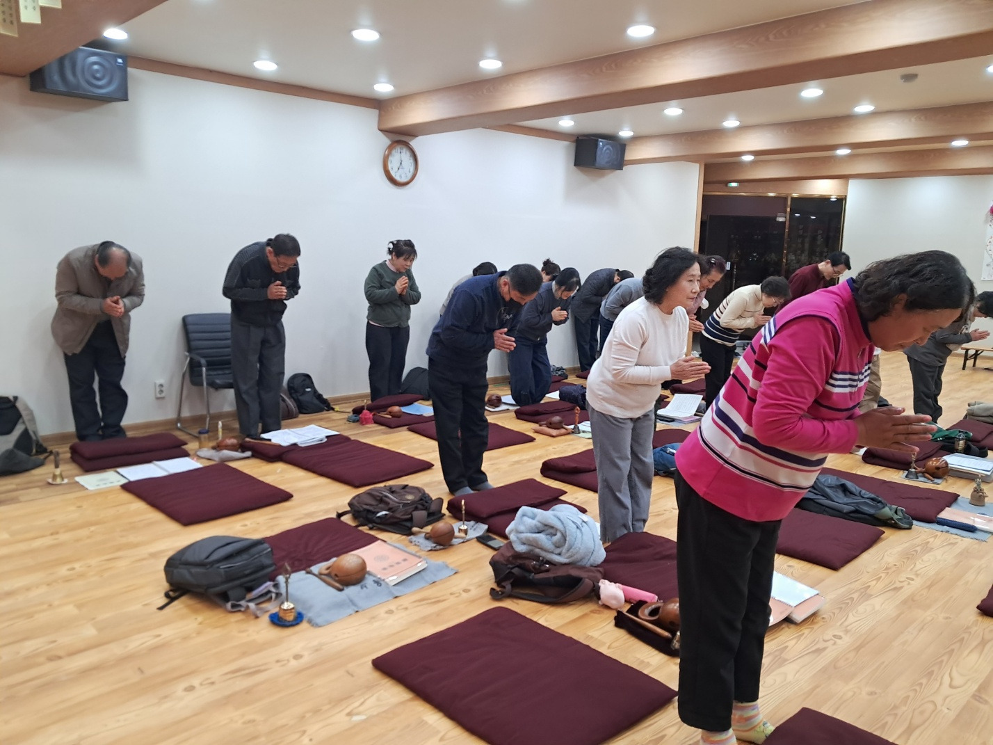 | <염불의식> * 일시 : 2026년 3월 26일(목) 19:00 ~ 21:20. * 장소 : 만불보전(6층). * 집전 : 수련팀 금산(28). 우리말 오분향게, 칠정례, 우리말반야심경, 전통 사홍서원. * 강의 : 대경(14/교육위원장) * 동참자 : - 백련팀 : 6명 향정(25,팀장), 자인행(25,총무), 대경(14/교육위원장), 청인(19), 혜림지(26), 우담화(30) - 보련팀 : 8명 원진(25,팀장), 무량수(28/총무), 해진(21), 법초(24), 무상덕(25), 보각(28), 여진화(28), 선재(30). - 수련팀 : 5명 여래심(27/팀장), 묘각행(28,총무) 월인심(21/총괄팀장), 금산(28), 관음심(30). - 일련팀 : 2명 연화행(25,팀장), 자재심(25) - 청련팀 : 3명 추정(21,팀장), 원각심(25), 법등행(30) - 홍련팀 : 3명 무상행(24,팀장), 용천(28,수석총무), 각성(21) 불기 2570년 3월 네째주 대경 교육위원장님 강의로 의식습의를 하였습니다. 습의내용은 관음시식을 전반적으로 복습하였고 상용연반을 강의 하셨습니다. 열정적으로 강의해주신 대경 교육위원장님, 감사드립니다. 습의에 참석해주신 선배님 후배님 여러분 감사드립니다. 예불 집전하시는 금산님 강의 하시는 대경 교육위원장님 |