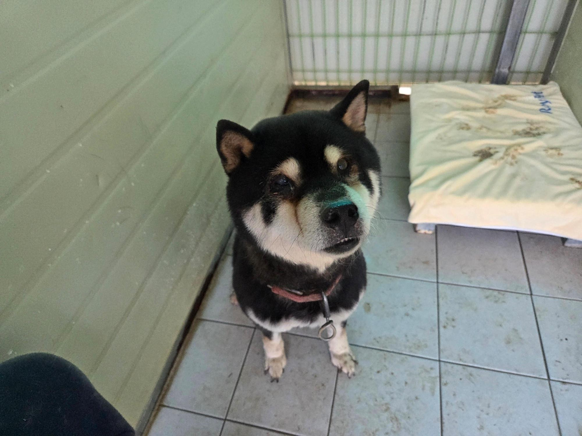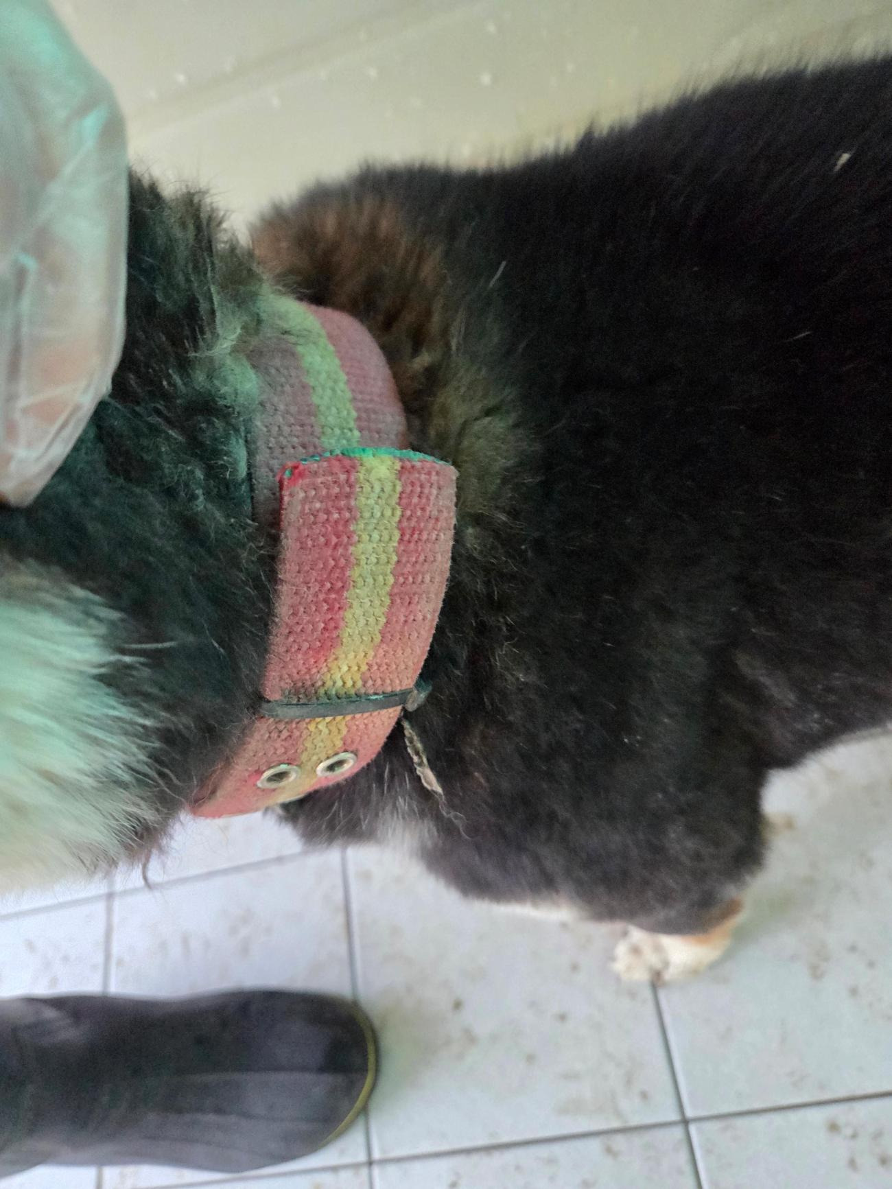 특징 : 목테착용, 톨게이트 주변 도로에서 위험하게 돌아다니고 있었음, 우측 안구 불편(눈꼽많음), 순딩이