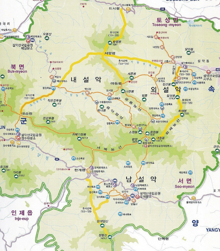 능선을 중심으로 남쪽은 남설악, 북쪽은 북설악이라 한다.