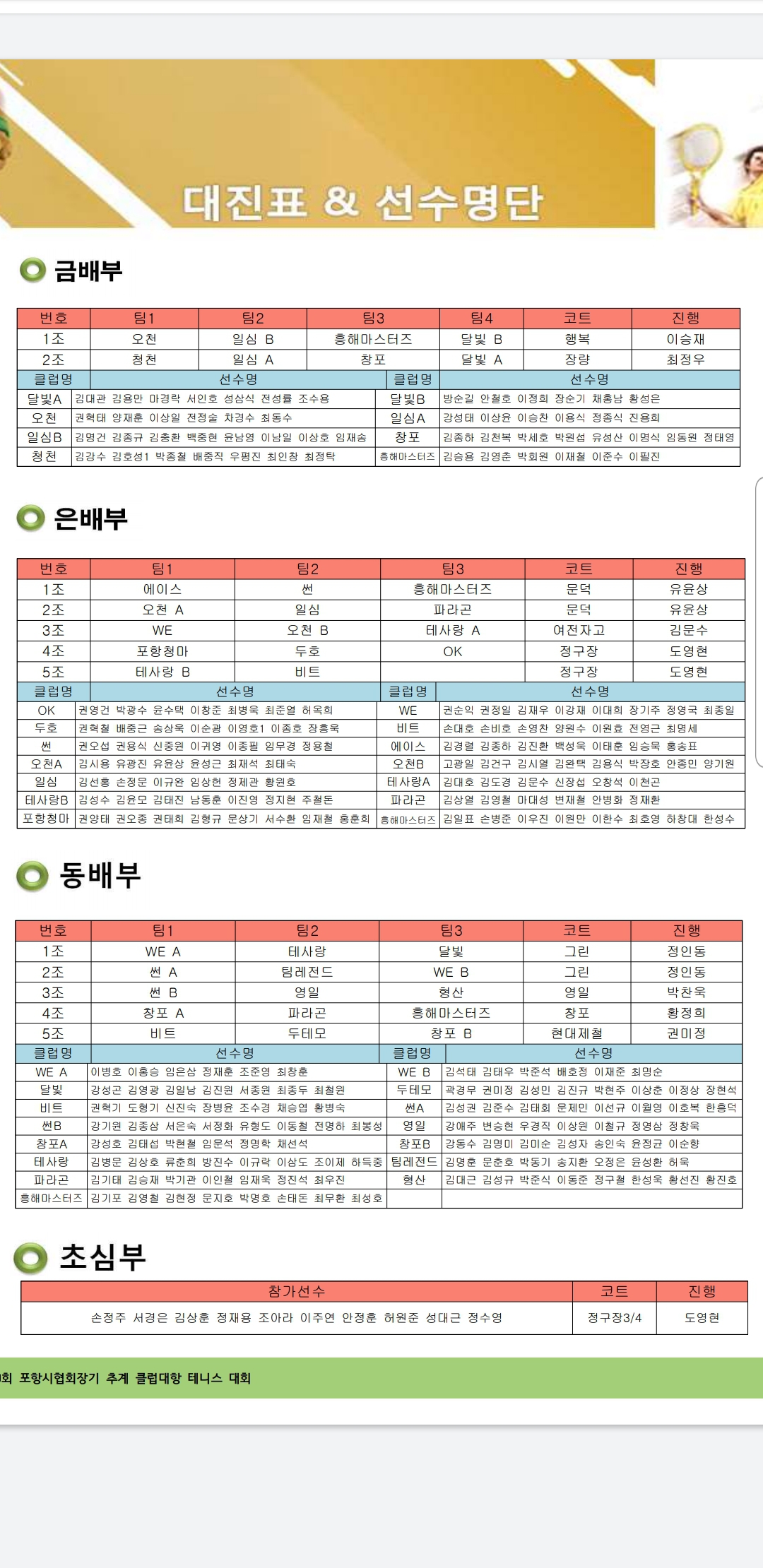 제20회 포항테니스협회장배 추계 클럽대항테니스 대회 대진표 작성자송재수(테니스협회 총무이사)|작성시간19.11.09|조회수175 목록 댓글 0 글자크기 작게가 글자크기 크게가 대진표 다음검색 현재 게시글 추가 기능 열기 북마크 공유하기 신고 센터로 신고 댓글 댓글 0 댓글쓰기 답글쓰기 댓글 리스트
