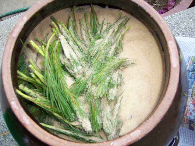 물끼를뺀 솔잎을 가지고 효소를담급니다.