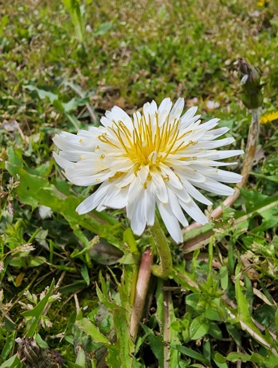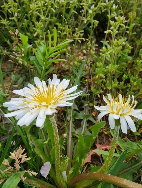 꽃봉오리는 여러개로 상부에는 백색의 실모양 털이 나고, 총포(總苞)는 녹색으로 외층의 포편(苞片)은 난상 피침형(卵狀 披針形) 내지 피침형(披針形)이며 가장자리는 막질(膜質)이고 백색의 긴 유모(柔毛)가 나고, 내층은 선상 피침형(線狀 披針形)으로 외층보다 1.5-2배 길며 정단(頂端)에는 소각(小角)이 있고, 설상화(舌狀花)는 황색이다. 수과(瘦果)는 갈색이며 상반부에는 뾰족한 작은 혹이 있고, 관모(冠毛)는 백색이다.
