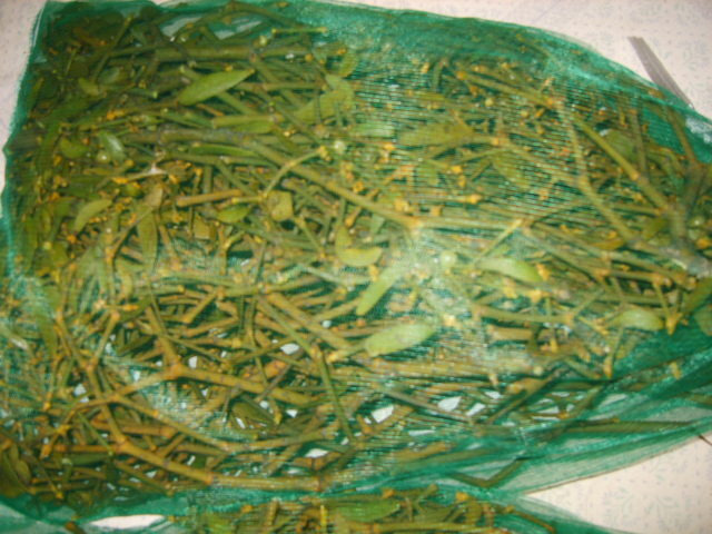 참나무에서 자란 겨우살이를 겨울이나 이른 봄철에 채취하여 잘게 썰어서 말린다.