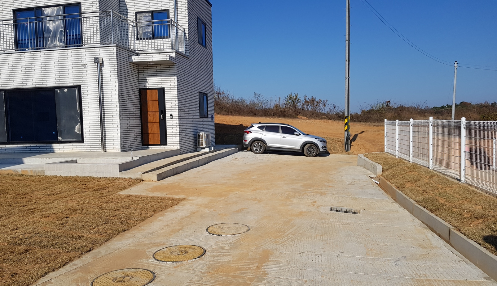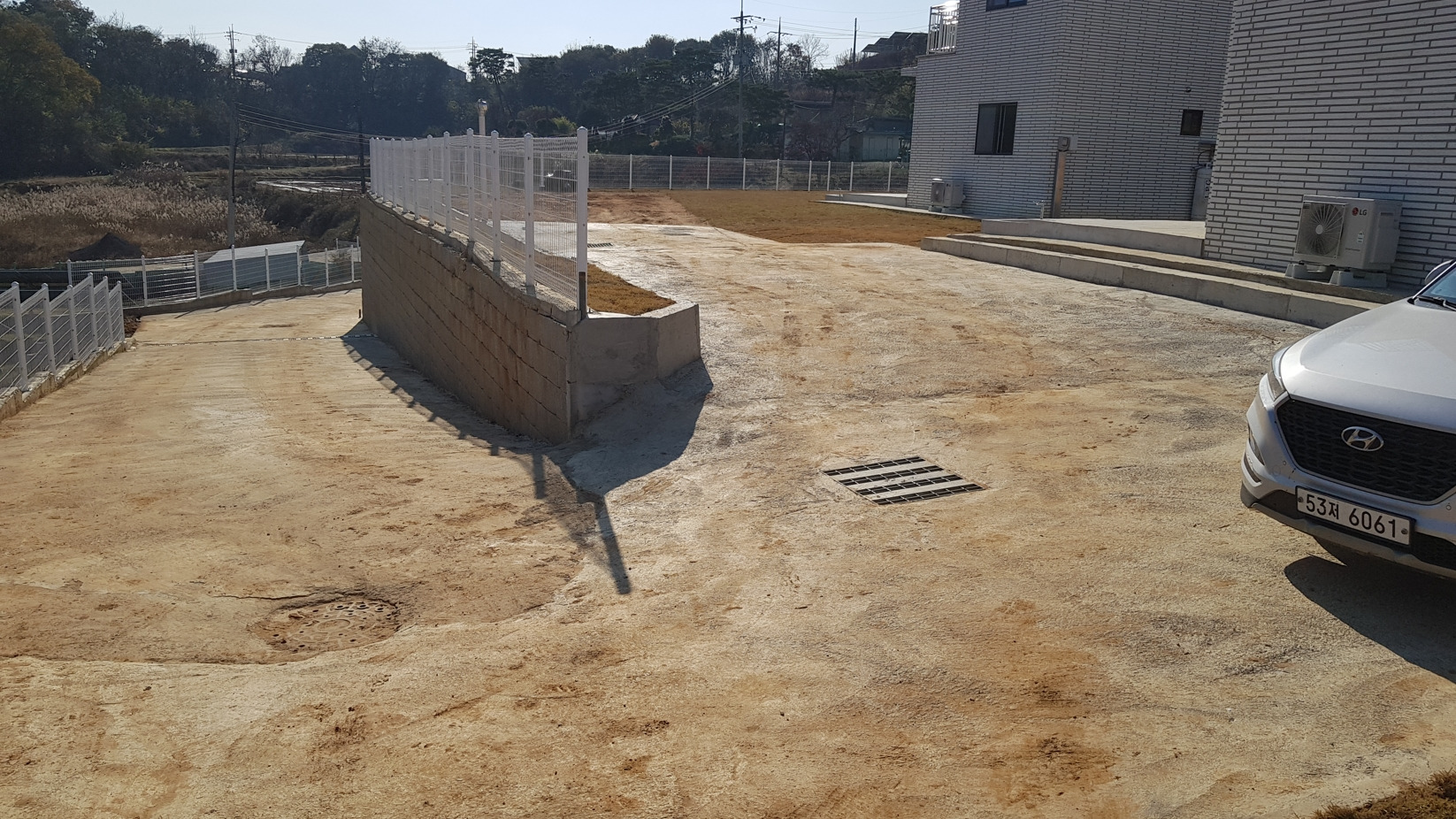 들어오는 진입로와 주차장,