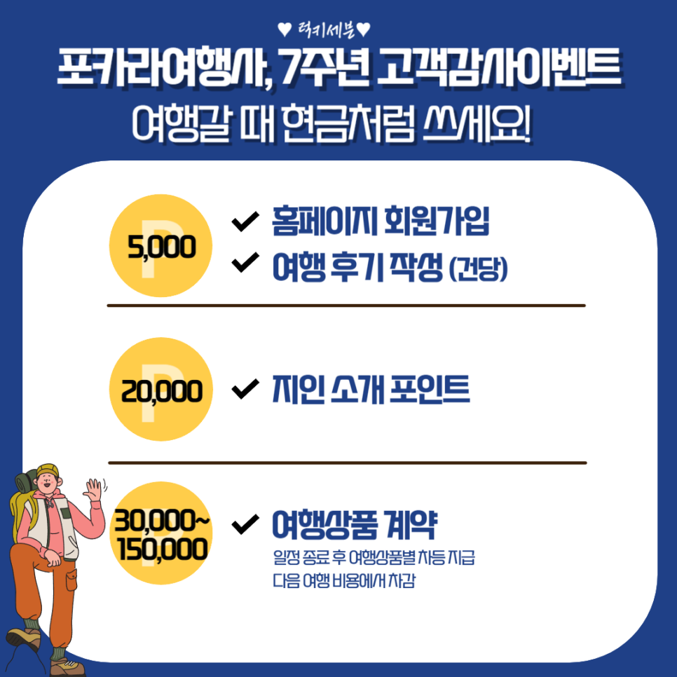 ▶ 5,000점 : 홈페이지 회원가입 / 여행후기 작성(건당)