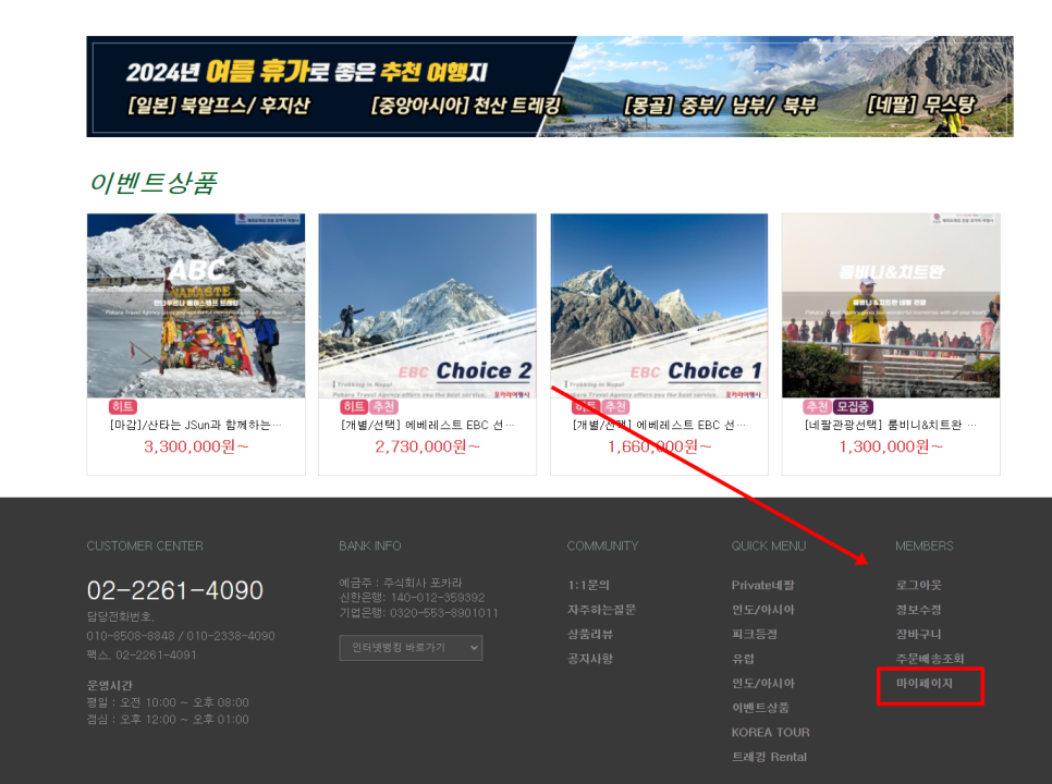 우선적으로 포카라여행사 홈페이지에서 가입을 하셔야겠죠?😊