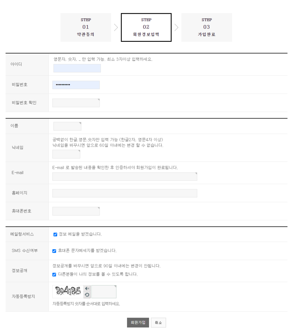 로그인하기 편한 아이디와 비밀번호를 설정해 주시고