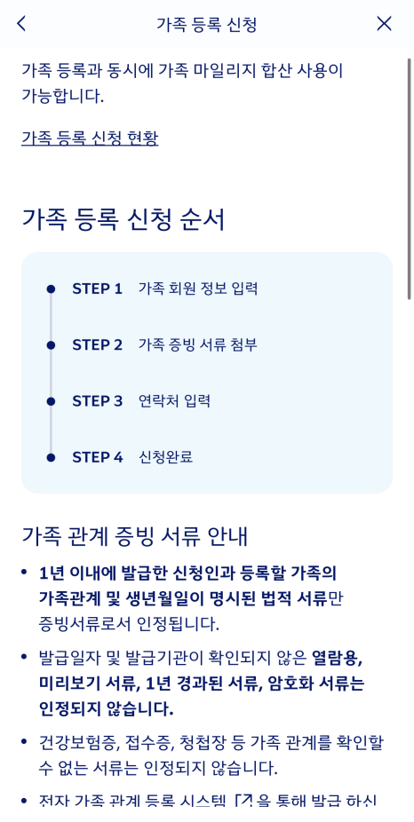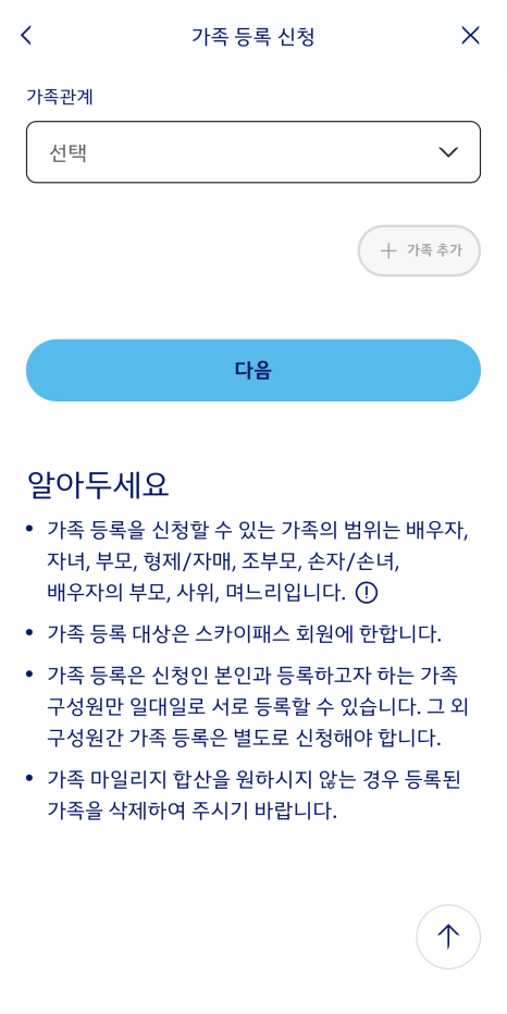 스카이패스 회원가입이 된 가족을 등록하여 마일리지 합산이 가능합니다!