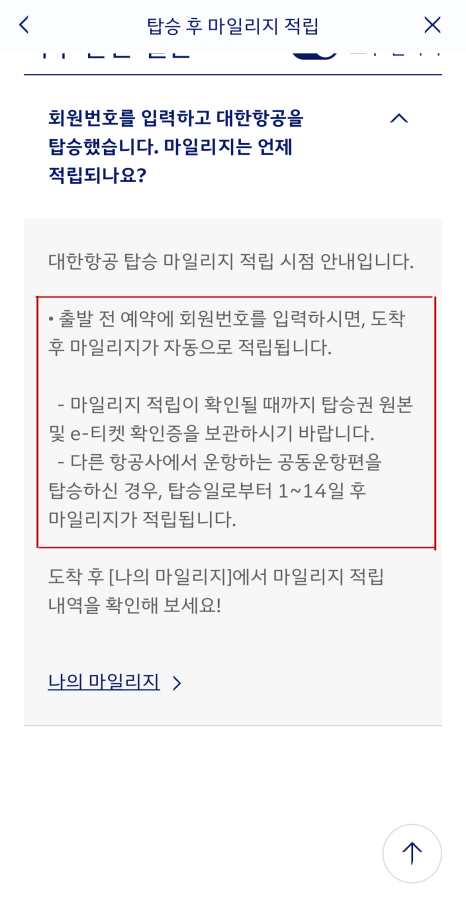 대한항공 외에 다른 제휴항공사를 이용 시에는 14일 내에 적립이 된다고하니 참고하세요~
