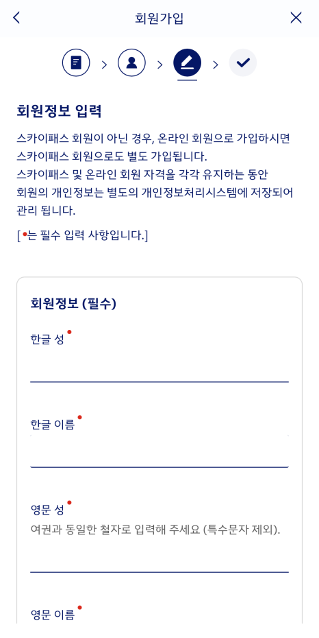 - 우선 마일리지 적립을 하려면 스카이패스 회원가입이 되어있어야 합니다!