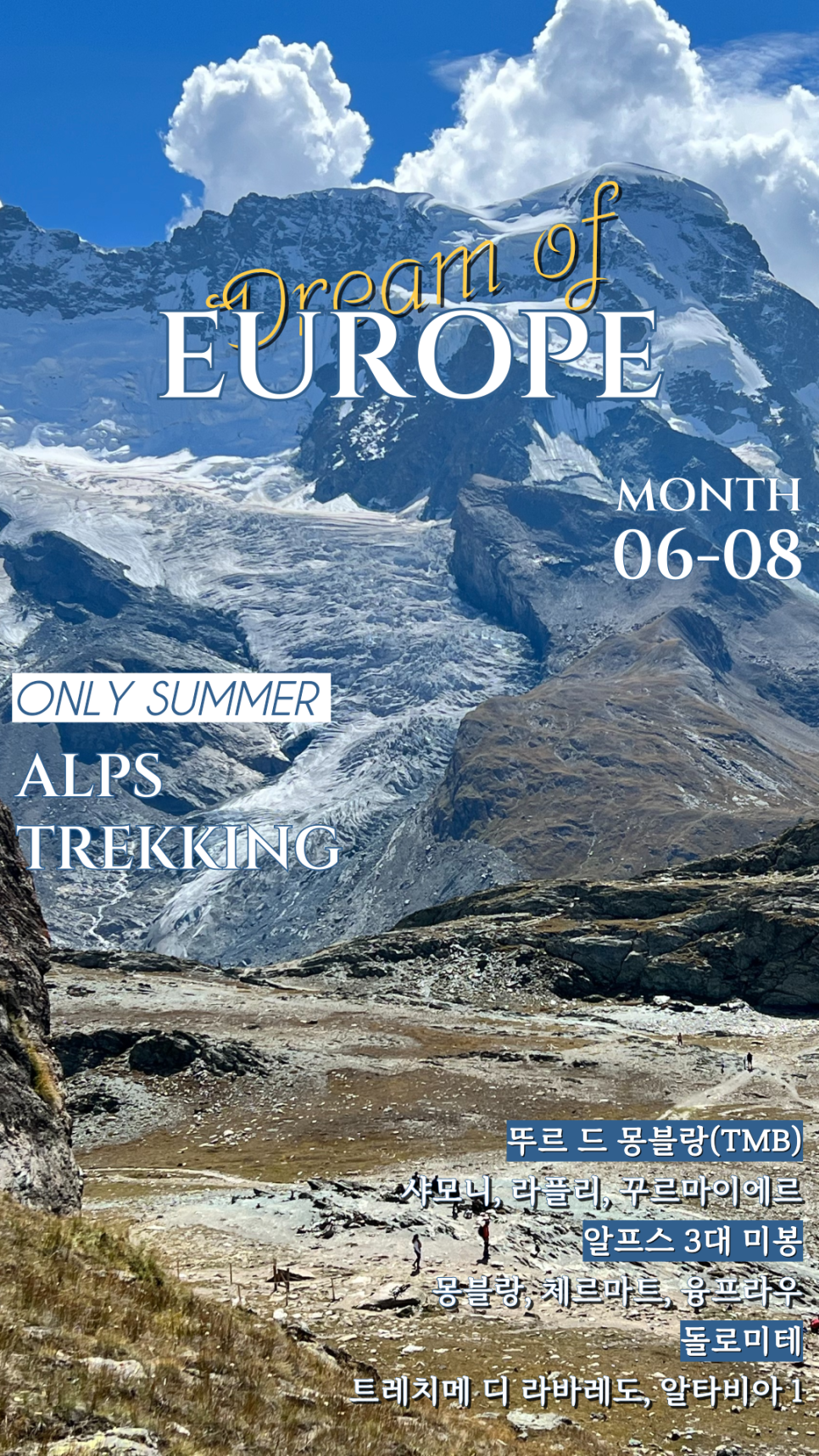 몽블랑, 마테호른, 융프라우를 만나는 알프스 3대 미봉,