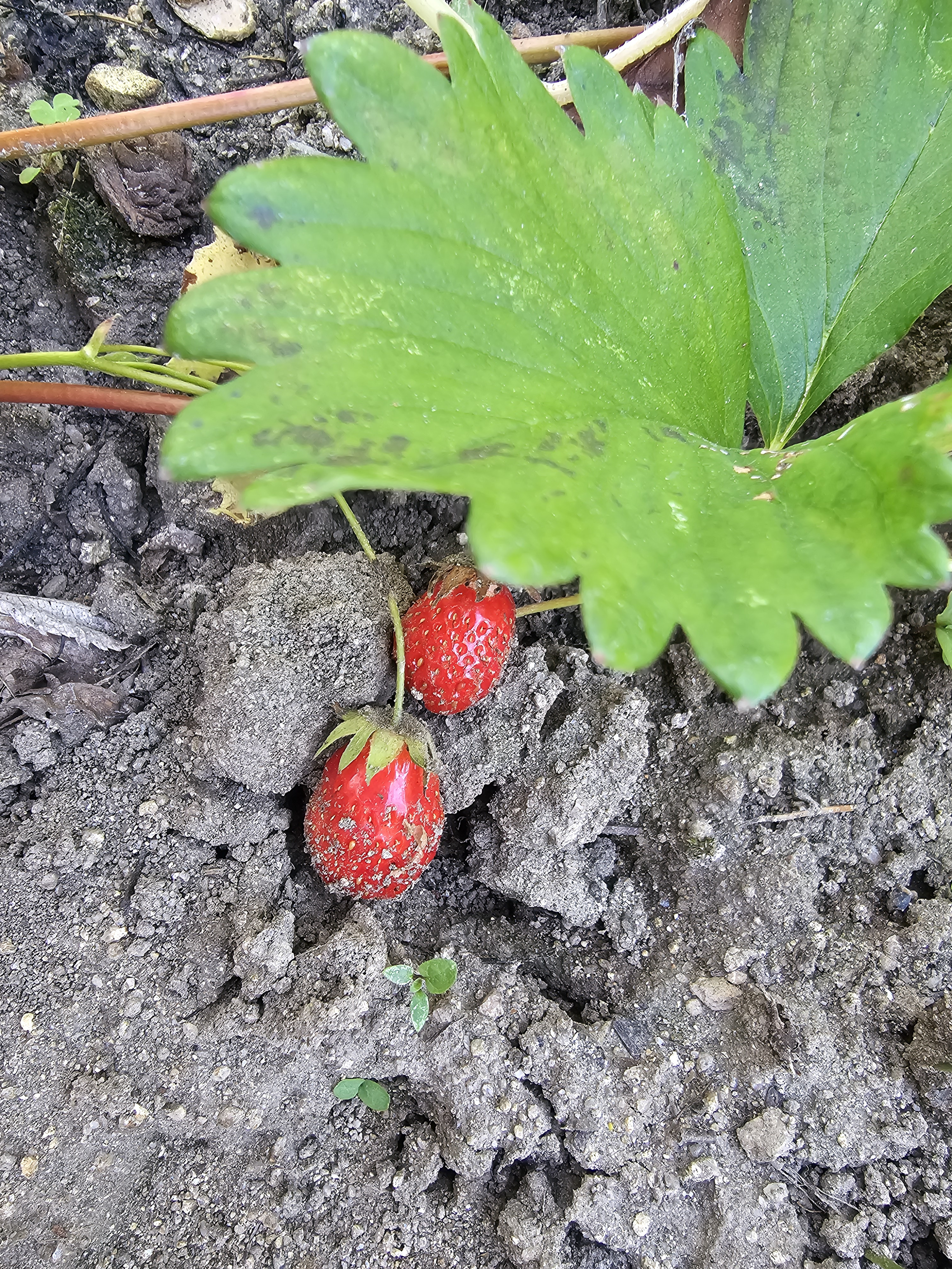 조금 철은 지났지만, 부모님댁에 딸기가 달렸어요~~~