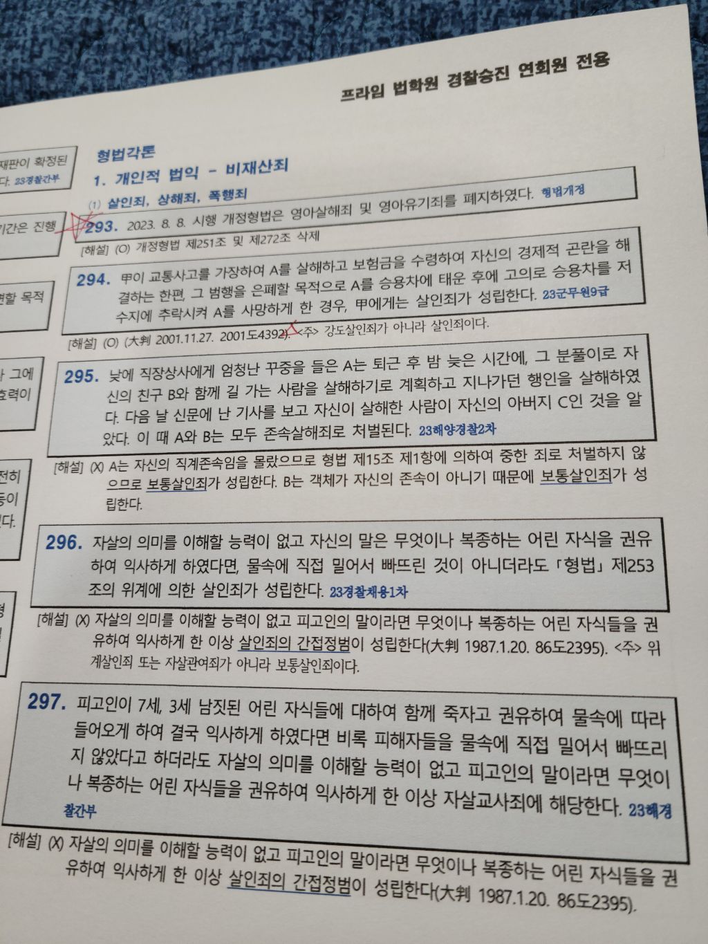 13번 1번 개정된 법률에 따라 영아살해 폐지되었으니 실제 시험에 이렇게 나오면 틀린 지문 처리하는 게 맞죠..?