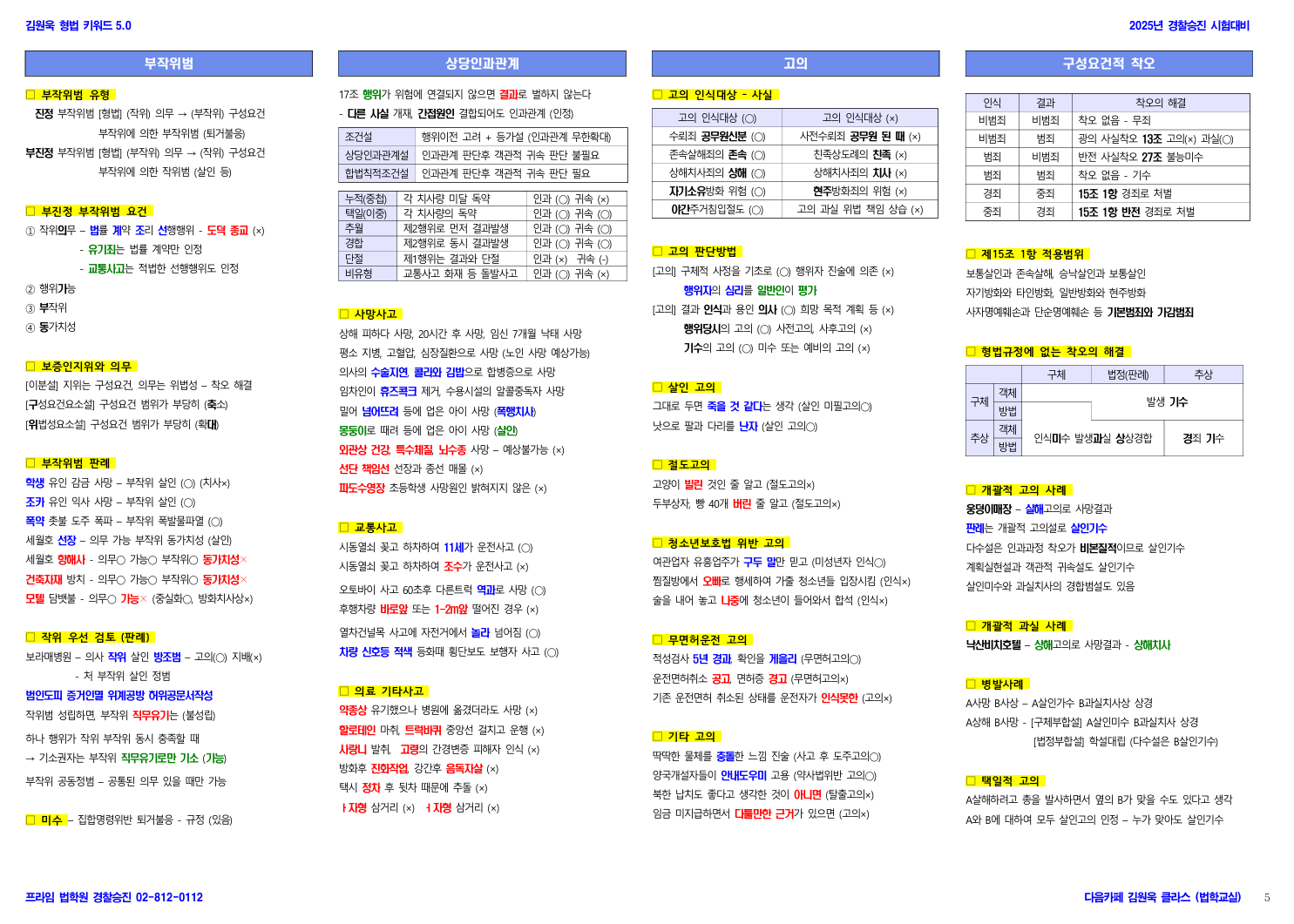 형법 판례키워드 컬러자료를 쌤이 사적으로 프린트하여 배부하였습니다.
