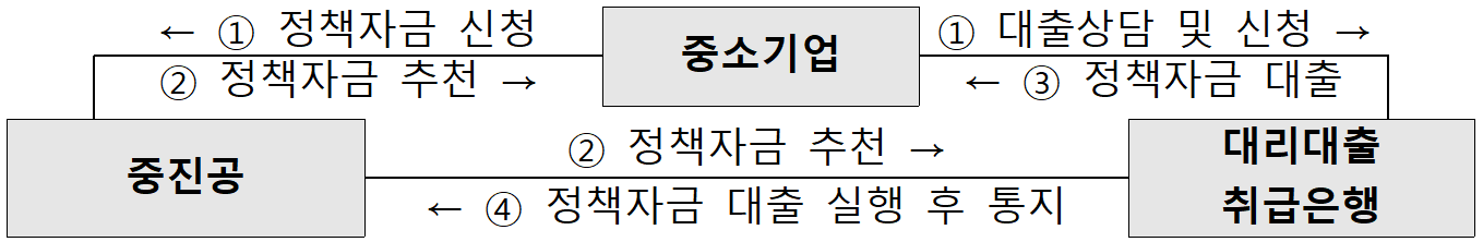 | 중소기업 | ⇨ | 중진공 | ⇨ | 중소기업 |