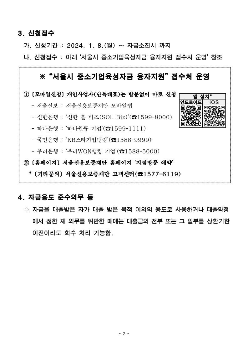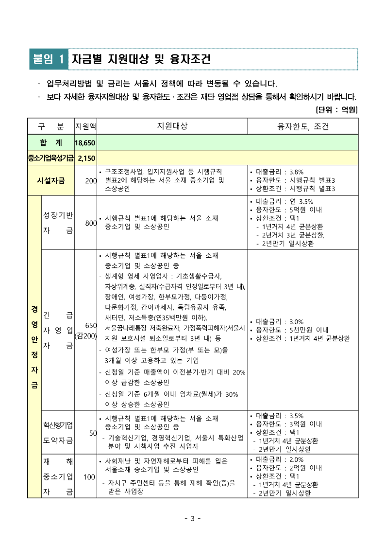 2024년 서울특별시 중소기업육성자금 융자지원계획 변경 공고