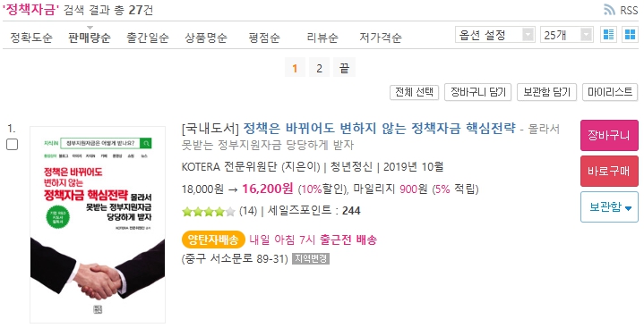 그럼에도 불구하고 여전히, 국내 3대 대형서점의 '정책자금' 분야에서 1위를 기록하고 있음을