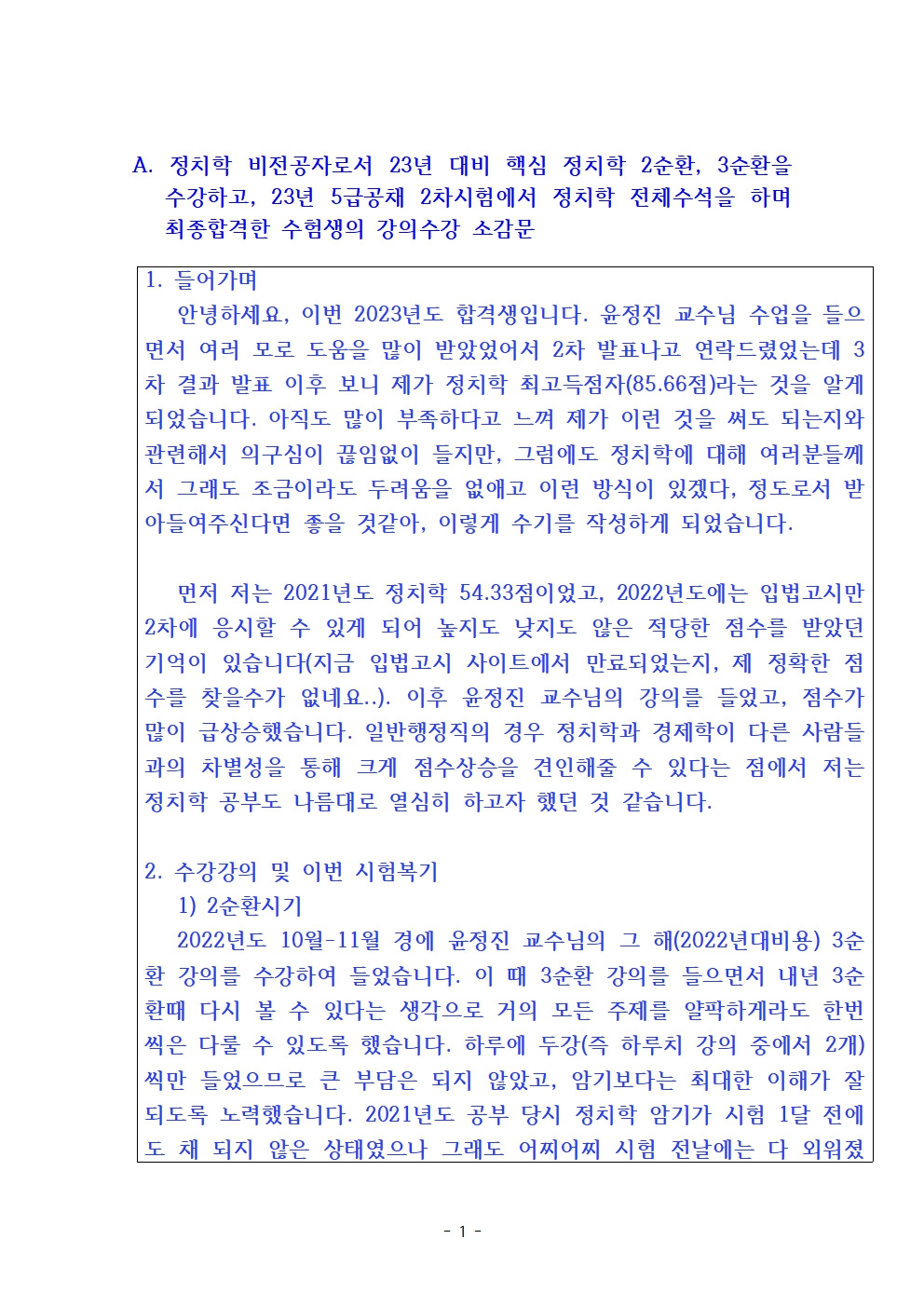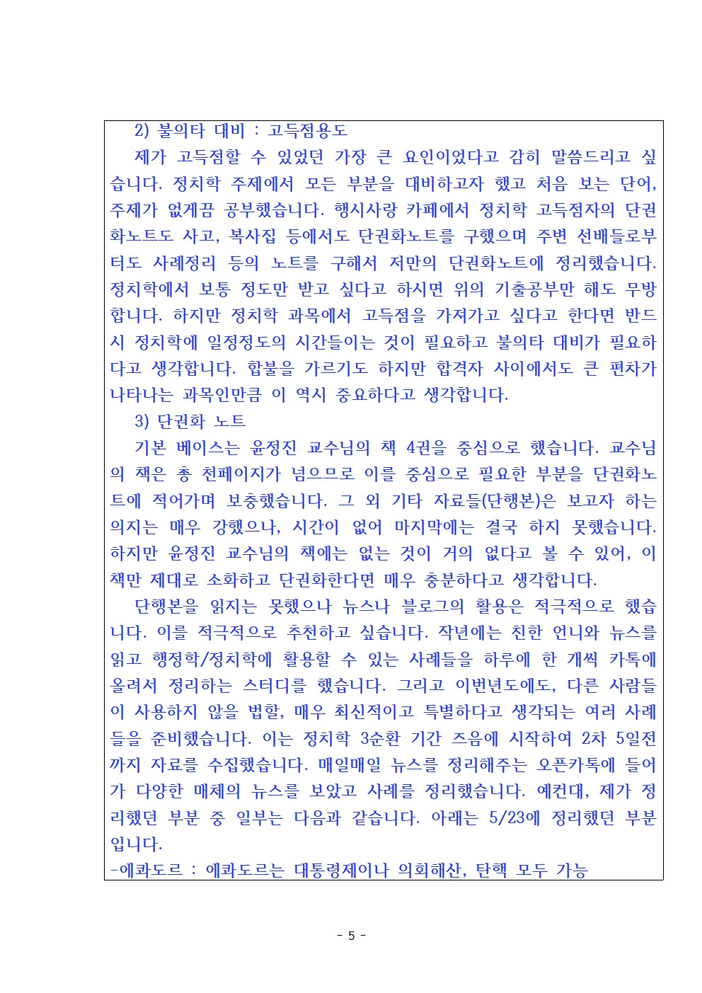 헥심 정치학 수강 후 5급공채 최종합격 수강소감입니다.