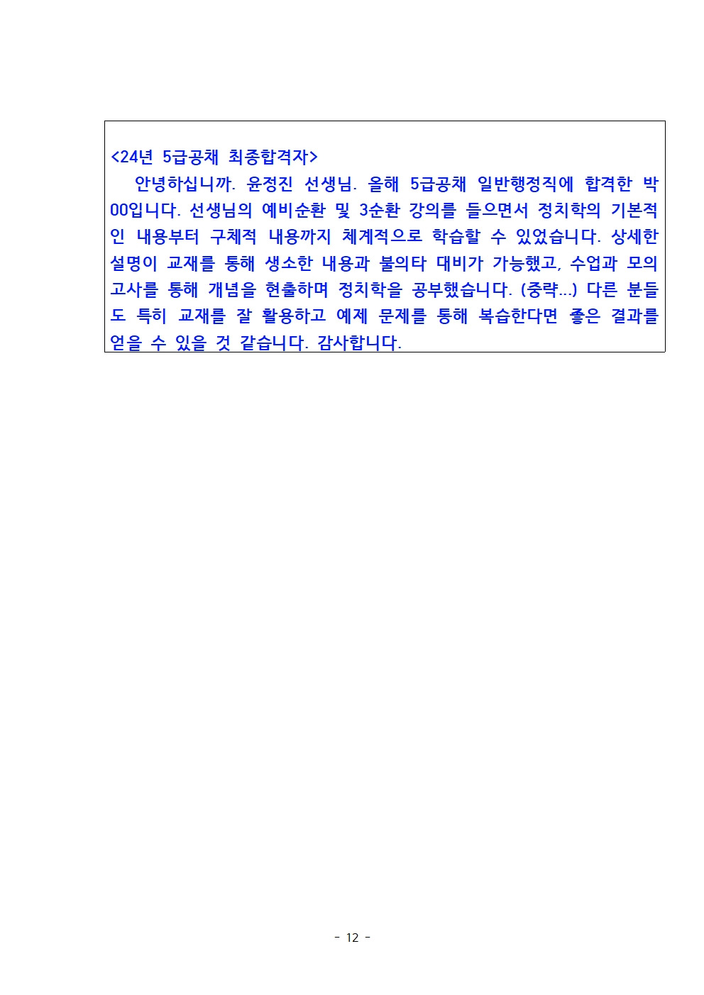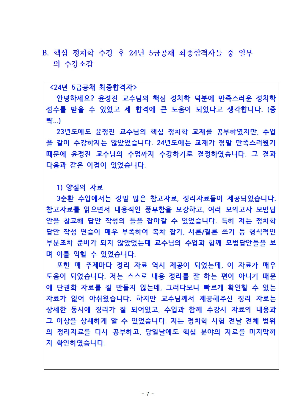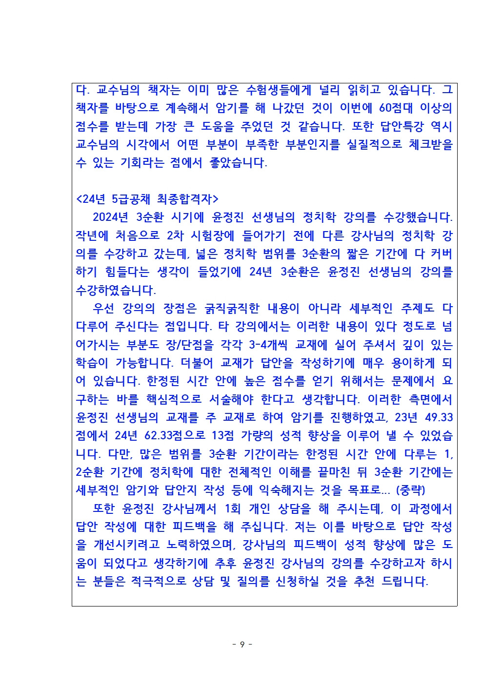 핵심 정치학 수강 후 5급공채 23년 최종합격지들 중 정치학 전체수석 및 24년 최종합격자들 중 정치학 우수성적의 수강소감입니다~