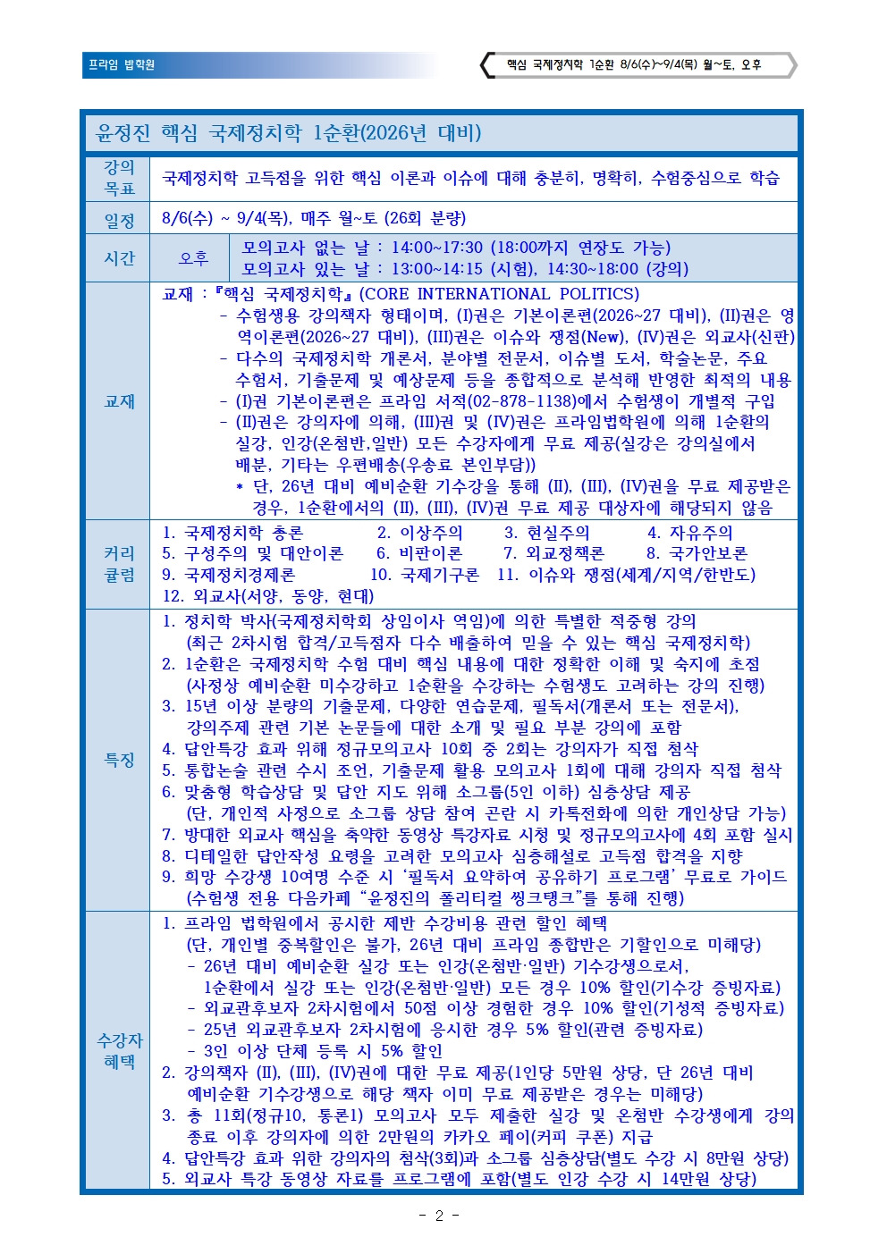 핵심 국제정치학의 26년 대비 1순환 8.6(수) 개강합니다~ (온라인 첨삭반 : 8.7(목) 개강)