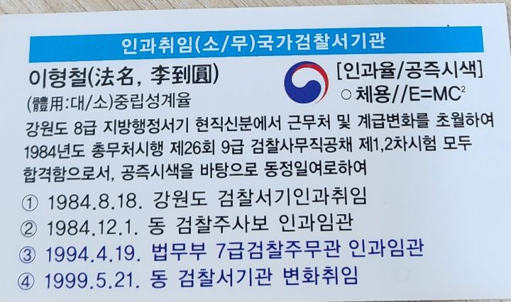 그 생명처럼하는 중립성(戒律//중립성계율)때문에 검찰공안직공무원(**중립성계율을 바탕하지아니하는 검찰공무원지위는 존재 할 이유자체가 소멸한다.)은 검찰관부터 정부각료ㆍ판관 등 모든 공무원의 직무 중립성을 수주 높은은 불변의 도덕성으로 바르게 진단,평가하고,적절한 의견,처방을개진해야하는 직무지위에기인하여 공무원중의 공무원으로 하여,역사적으로 참치는죽어도 참치로 평가하듯하는 진리가 수여하는인과검찰[(소//유(양)-무(음)]이 존재할 수있는것으로한다. 이같은 현상계사실에대하여 대소유무이치를 바탕으로한 체용의진리분석구조개념도가 가능하다.