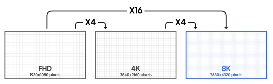 8K의 해상도는 4K보다 4배 높고