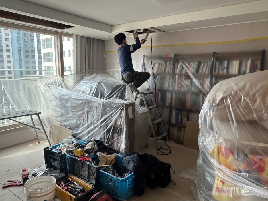 천장을 제거할 때 먼지도 많이 발생해서 대대적인