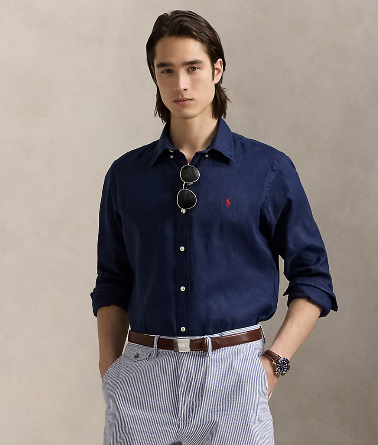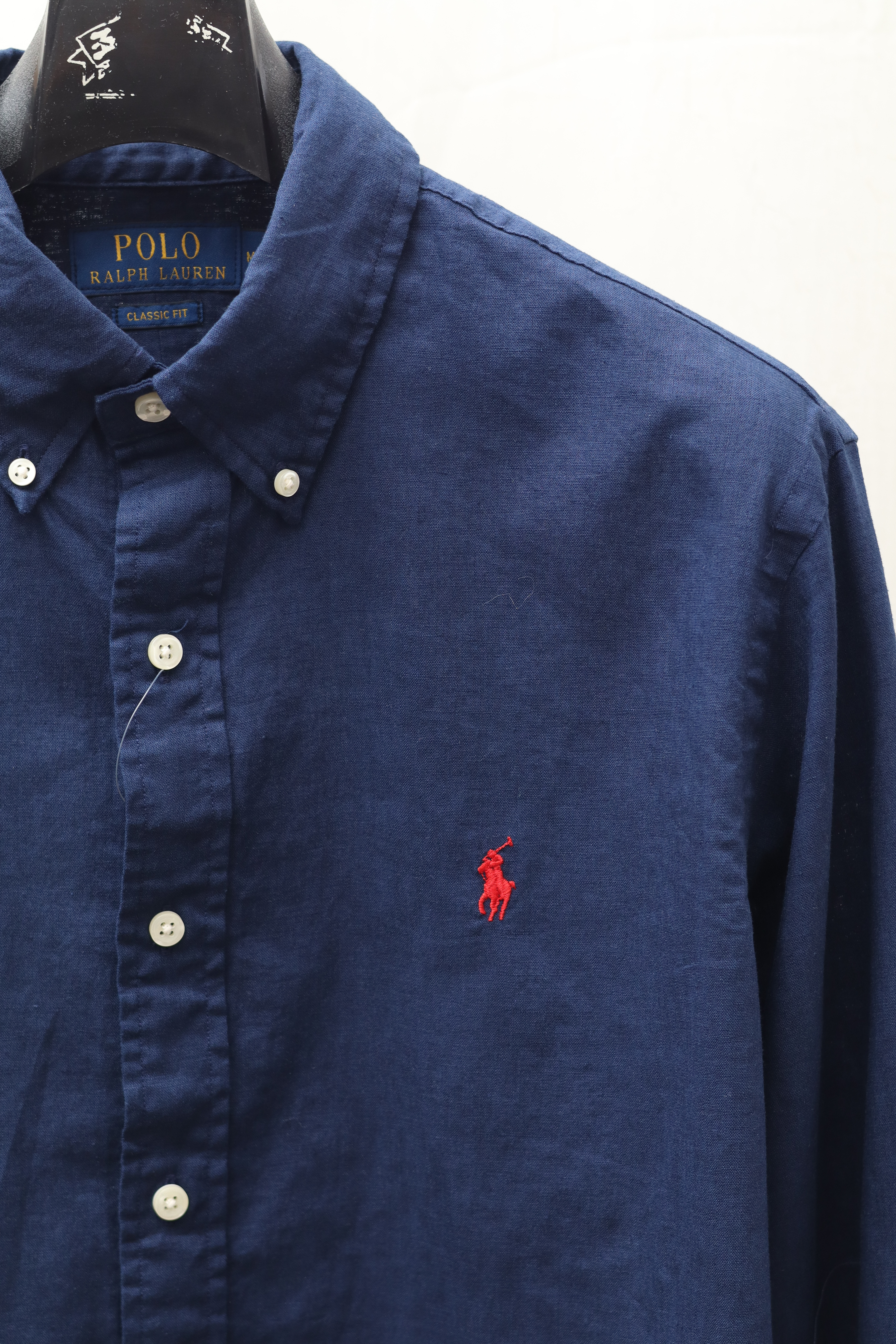 클래식핏 린넨 카툰 셔츠 - 네이비