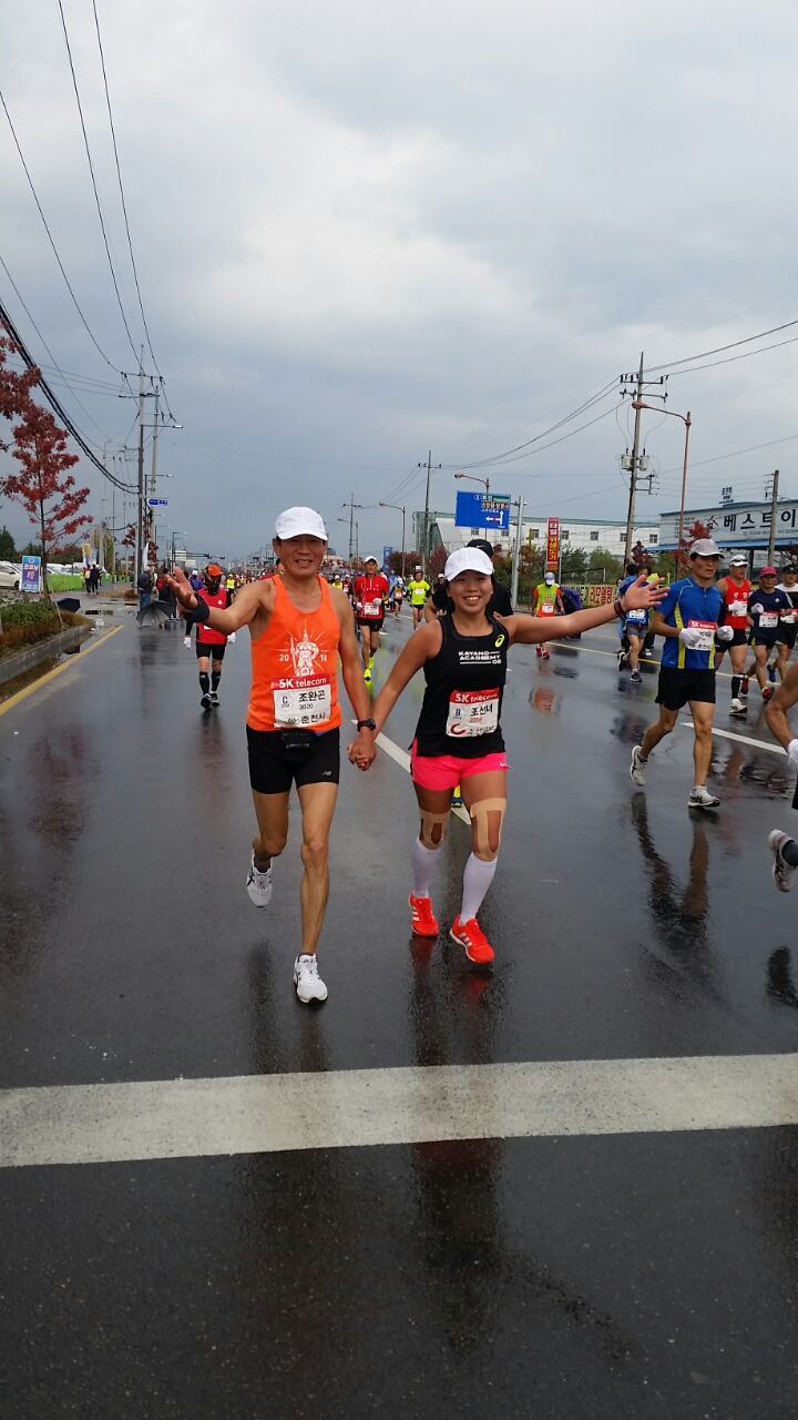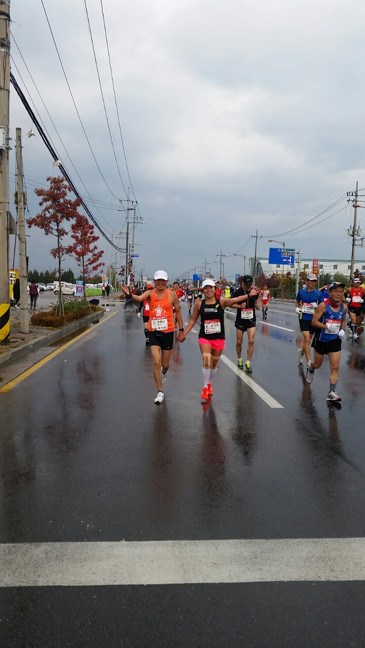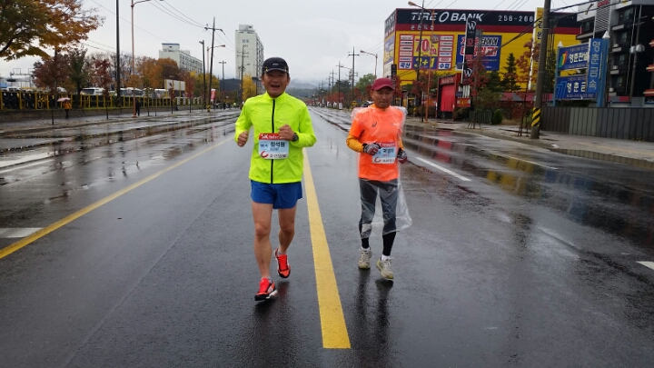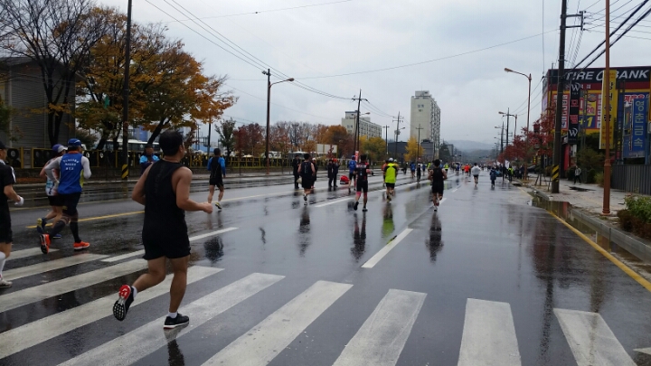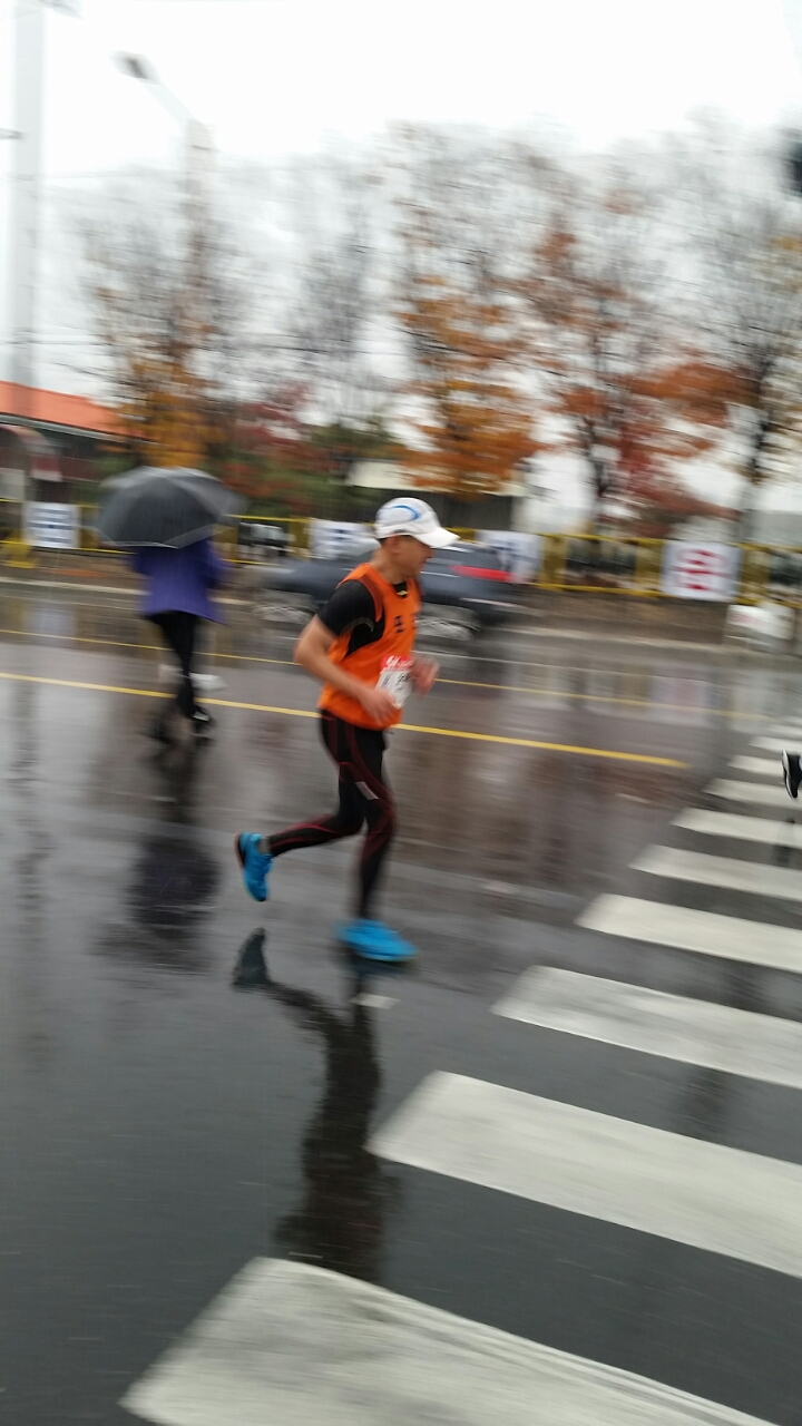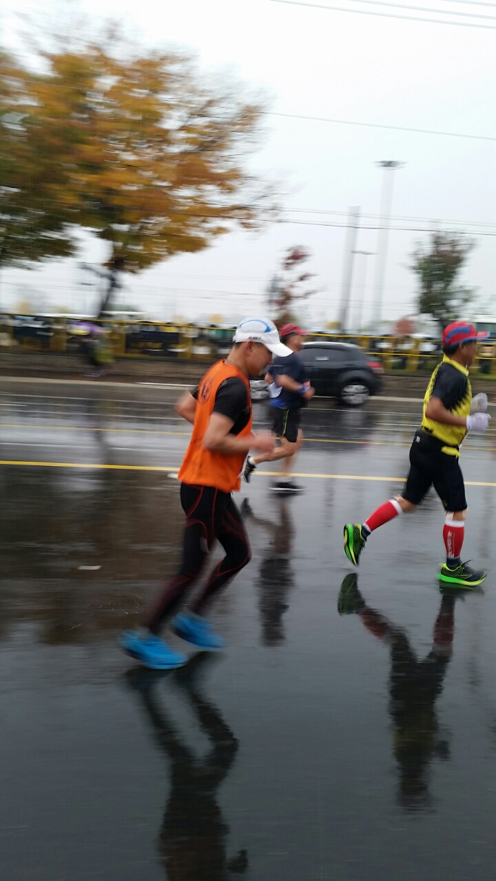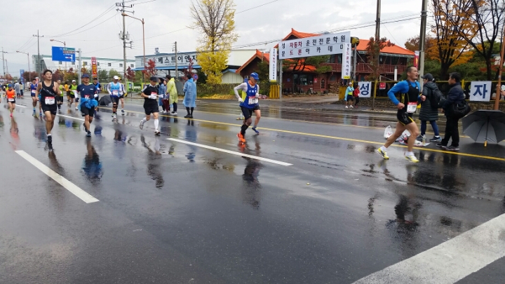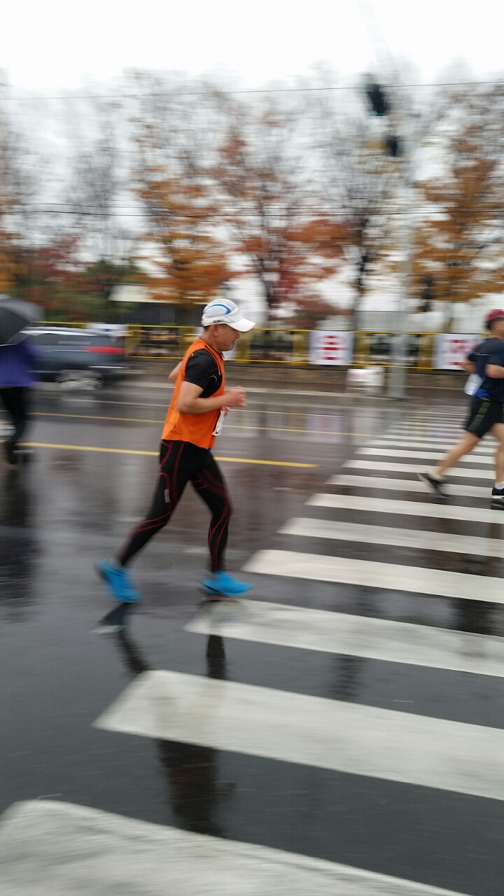 10시 출발 10km 잠시 개이더니 11시30분 부터는 마치 여름비처럼 오락가락 하면서 내린다.