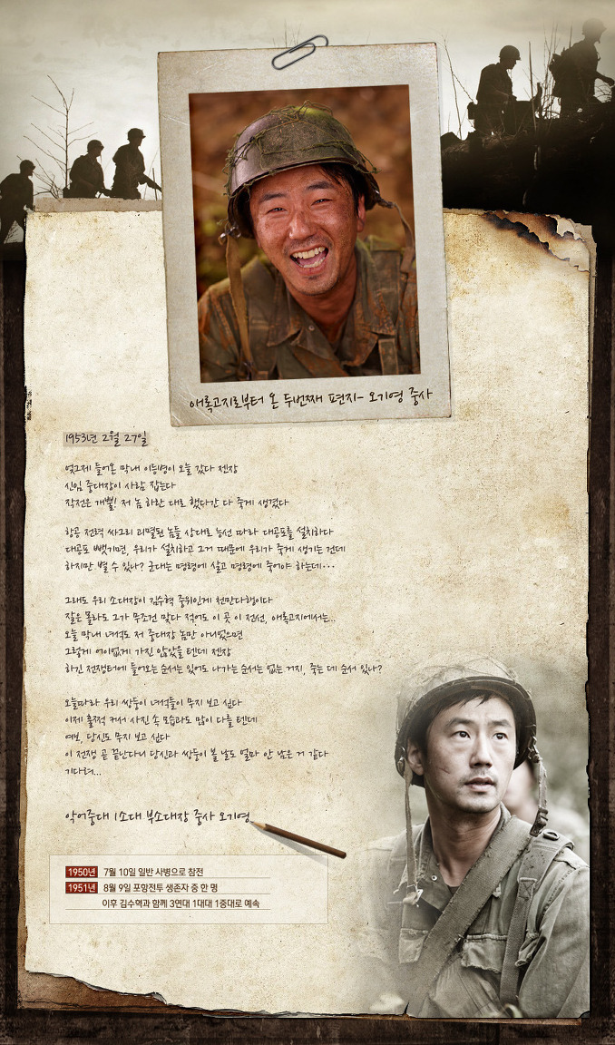 [스크랩] [기 타]스파이 파파 - 가족, 코미디 | 한국 | 80 분 | 개봉 2011-10-27 | 이두일, 김소현, 이승연 작성시간12.08.27|조회수91 목록 댓글 0 글자크기 작게가 글자크기 크게가 간첩아빠와 간첩 잡는 딸? 스파이 아빠 남한에서 세탁소를 운영하는 이만호(39 살)는 14년 전 남파되어 고정간첩으로 살고 있는 북파공작원, 일명 빨갱이다. 조국통일을 위해 밤마다 몰래 북에서 온 암호를 해독하는 등의 공작원 활동을 하고 있다. 간첩 잡는 딸 딸 순복(11 살)은 초등학교 4학년 열혈 반공소녀. ‘방범교육표창’까지 받으면서 반공 웅변대회 및 포스터 그리기, 상을 받기 위한 삐라 줍기에 열을 올리다가 간첩잡기에 나선다. 드디어 찾은 .. 스파이 파파 (2011) :1부 [전체화면으로 감상하기] ★내방에서 영화 더보기☜ 스파이 파파 (2011): 2부 [전체화면으로 감상하기] 1951년, 우리가 알고 있던 전쟁은 끝났다 이제 모든 전선은 ‘고지전’으로 돌입한다! 1953년 2월, 휴전협상이 난항을 거듭하는 가운데 교착전이 한창인 동부전선 최전방 애록고지에서 전사한 중대장의 시신에서 아군의 총알이 발견된다. 상부에서는 이번 사건을 적과의 내통과 관련되어 있다고 의심하고 방첩대 중위 ‘강은표’(신하균)에게 동부전선으로 가 조사하라는 임무를 내린다. 애록고지로 향한 은표는 그 곳에서 죽은 줄 알았던 친구 ‘김수.. 고지전 (高地戰, 2011) :1부 [전체화면으로 감상하기] ★내방에서 영화 더보기☜ 고지전 (高地戰, 2011) : 2부 [전체화면으로 감상하기] 다음검색 스크랩 원문 : 시인의 파라다이스 현재 게시글 추가 기능 열기 북마크 신고 센터로 신고 댓글 댓글 0 댓글쓰기 답글쓰기 댓글 리스트