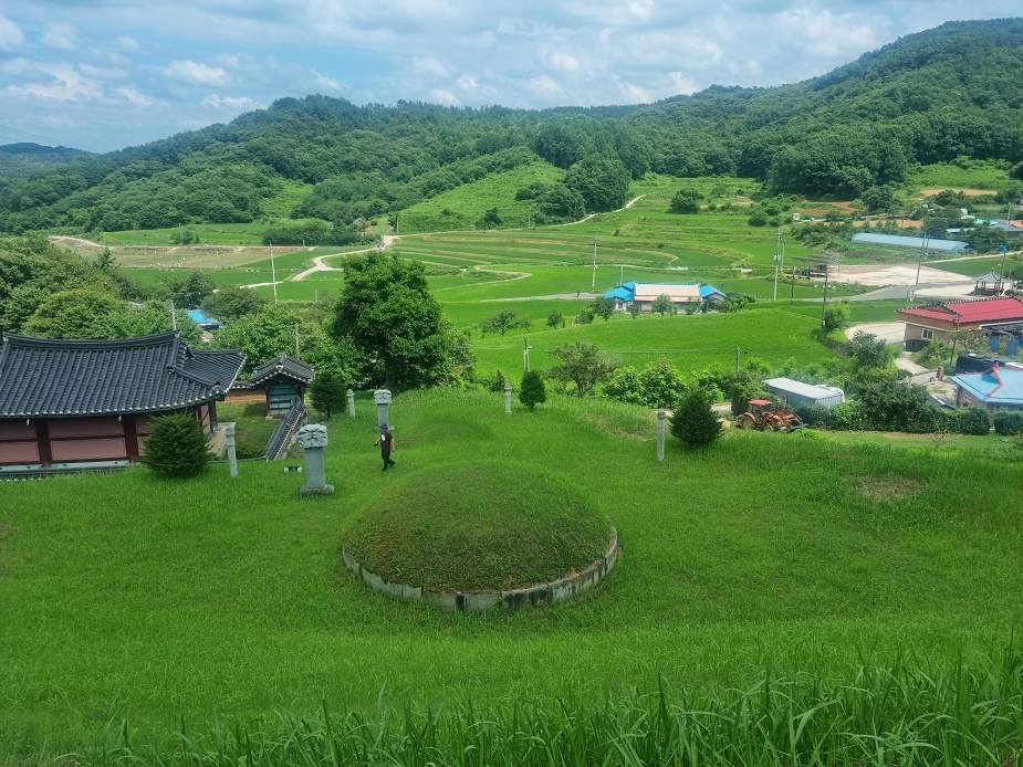 이이명의 묘는 부여군 임천면 옥곡리 314번지에 있다. 별 기대없이 갔다가 눈이 번쩍 띄는 명당이다. 이런 경우를 대박이라 한다던가...거대한 봉분과 와혈이 어우러져 아름다운 모습이다. 사진으로 다 담아내지 못하는 아쉬움이 있다. 기회가 되면 방문해서 힘차게 기를 전달하는 입수룡과 와혈의 조화를 감상하기 바란다.