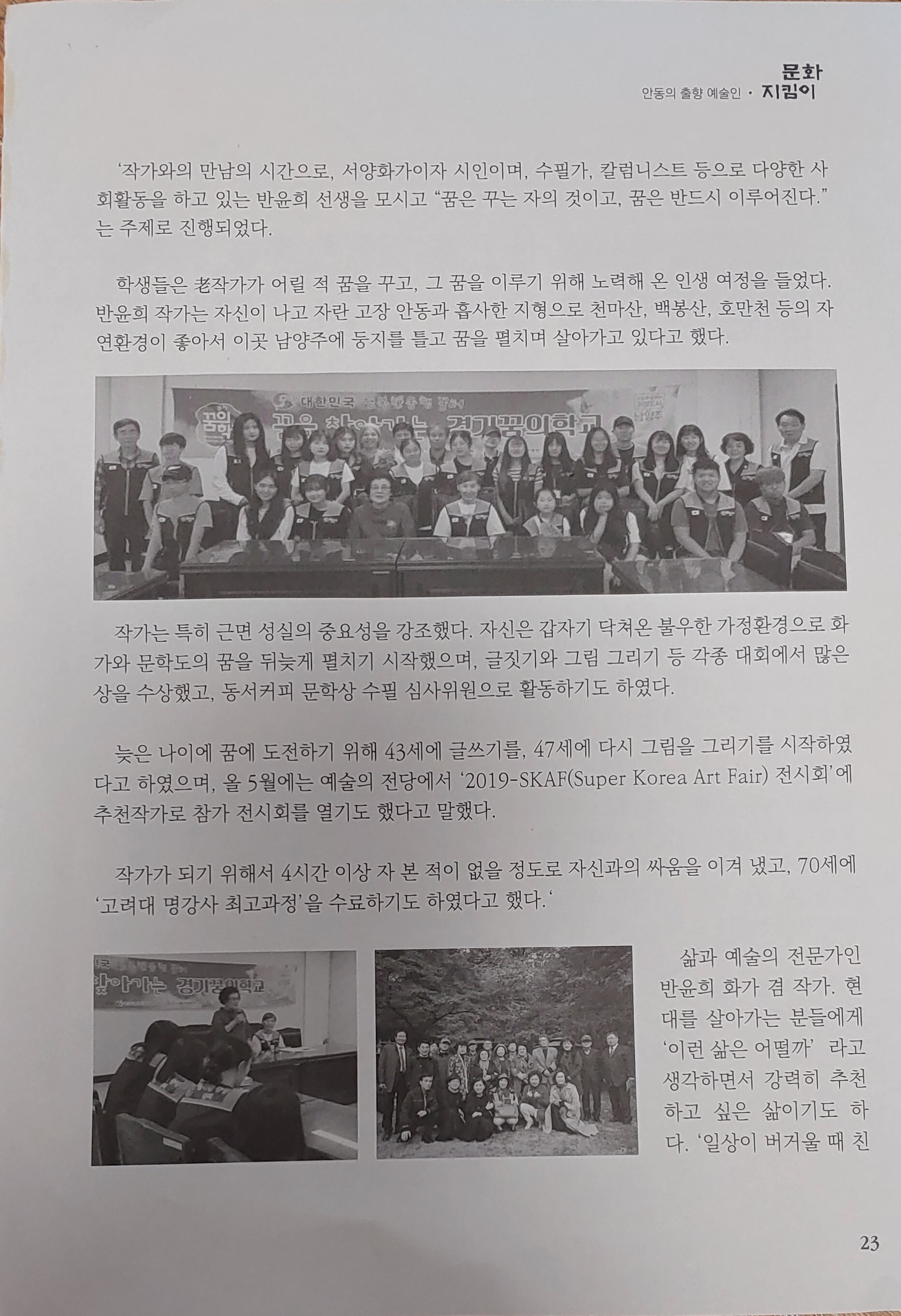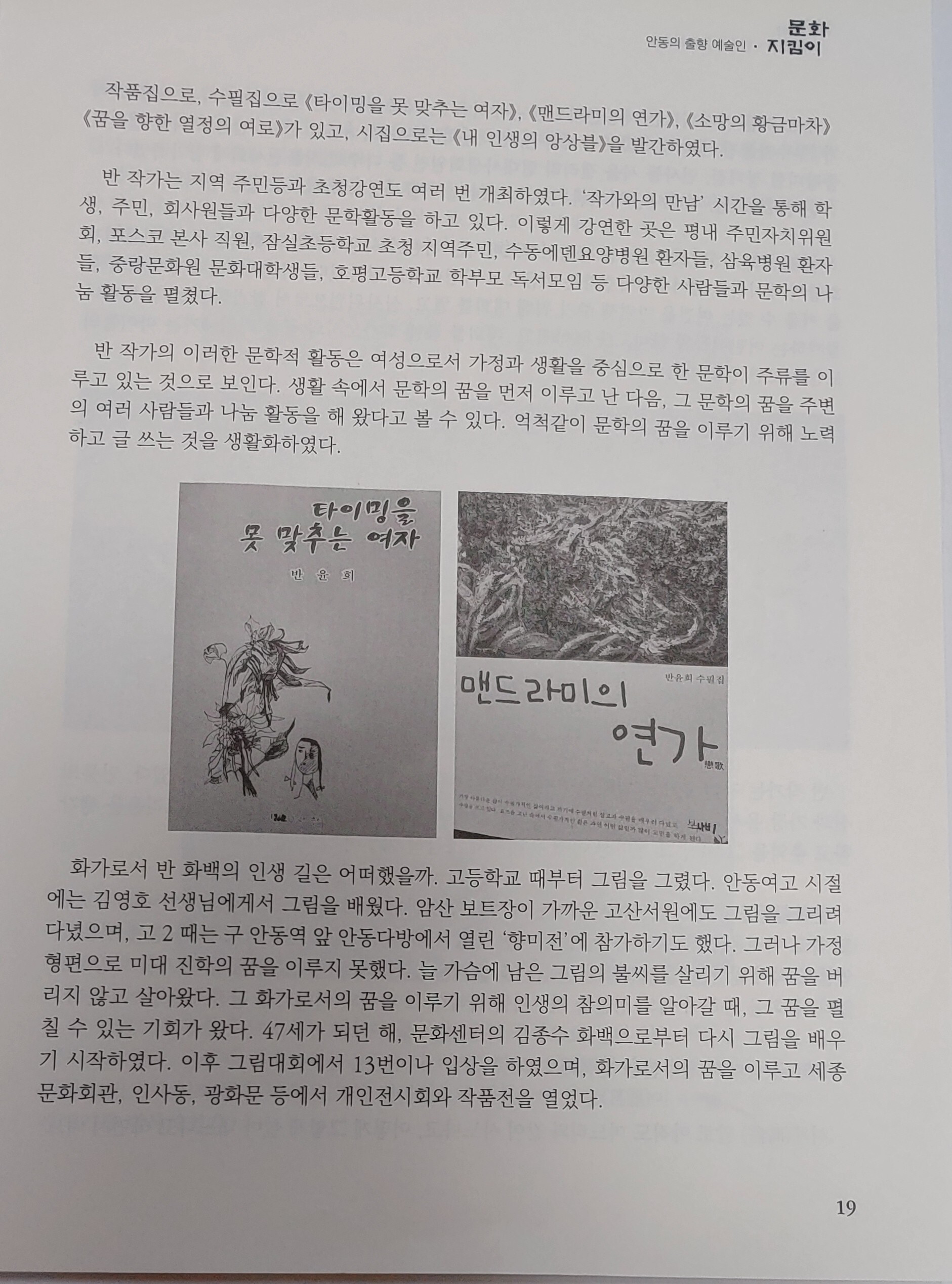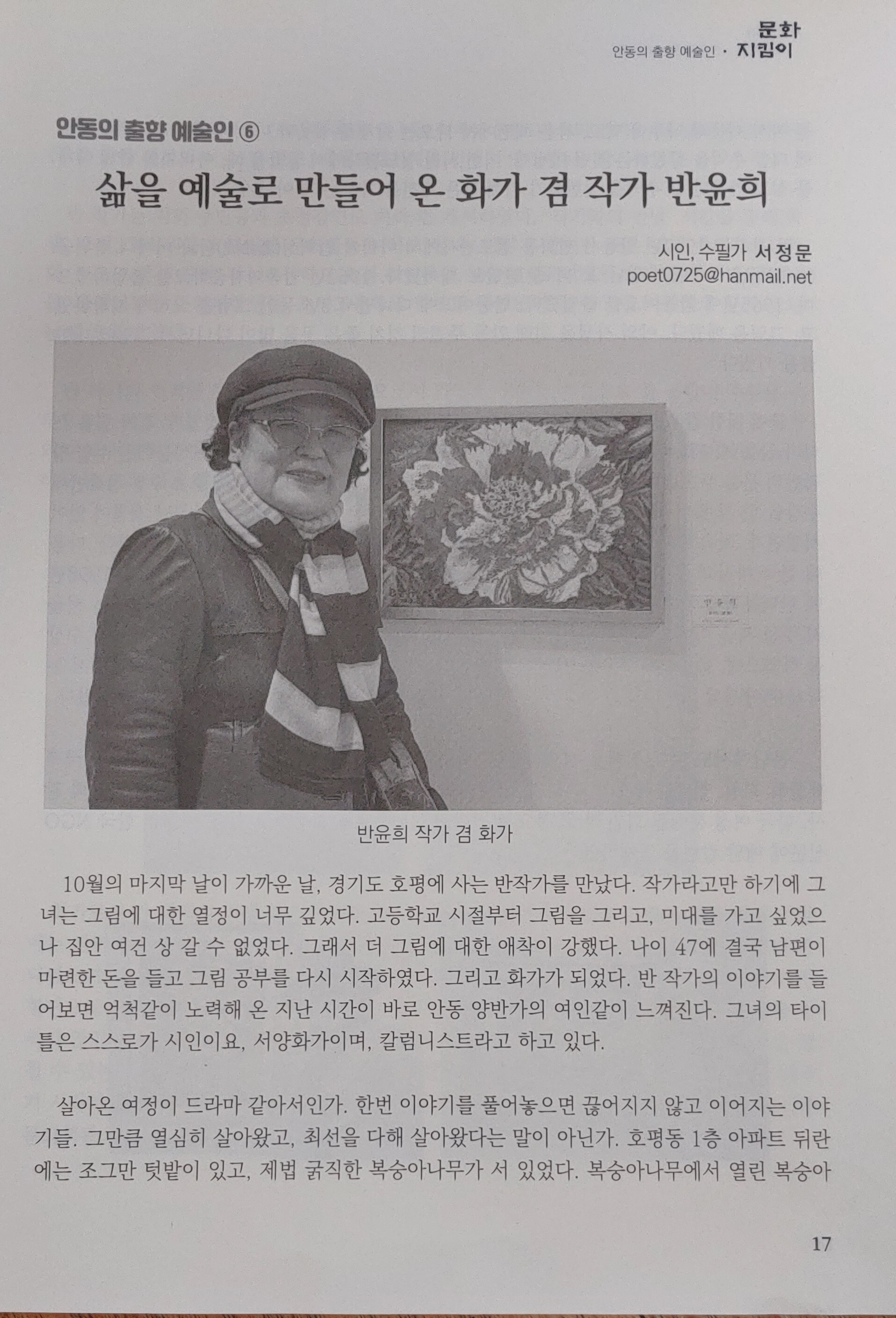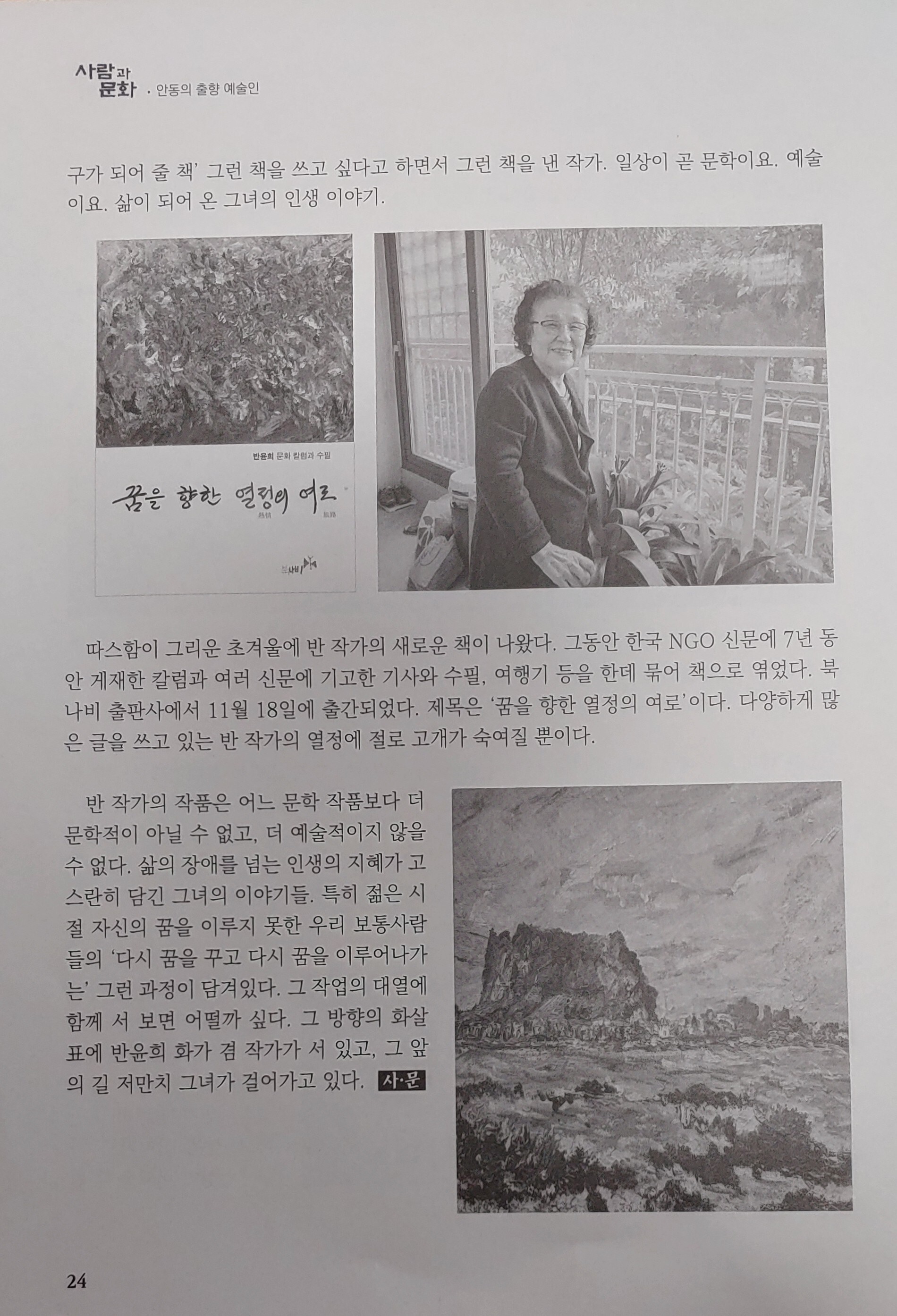 [스크랩] 안동의 출향예술인 (6) 삶을 예술로 만들어 온 화가 겸 작가 반윤희 [시인 서정문 기자] 작성자반윤희|작성시간23.12.20|조회수12 목록 댓글 0 글자크기 작게가 글자크기 크게가 다음검색 스크랩 원문 : 별 빛 가득한 집(bright star happily) 현재 게시글 추가 기능 열기 북마크 공유하기 신고 센터로 신고 댓글 댓글 0 댓글쓰기 답글쓰기 댓글 리스트