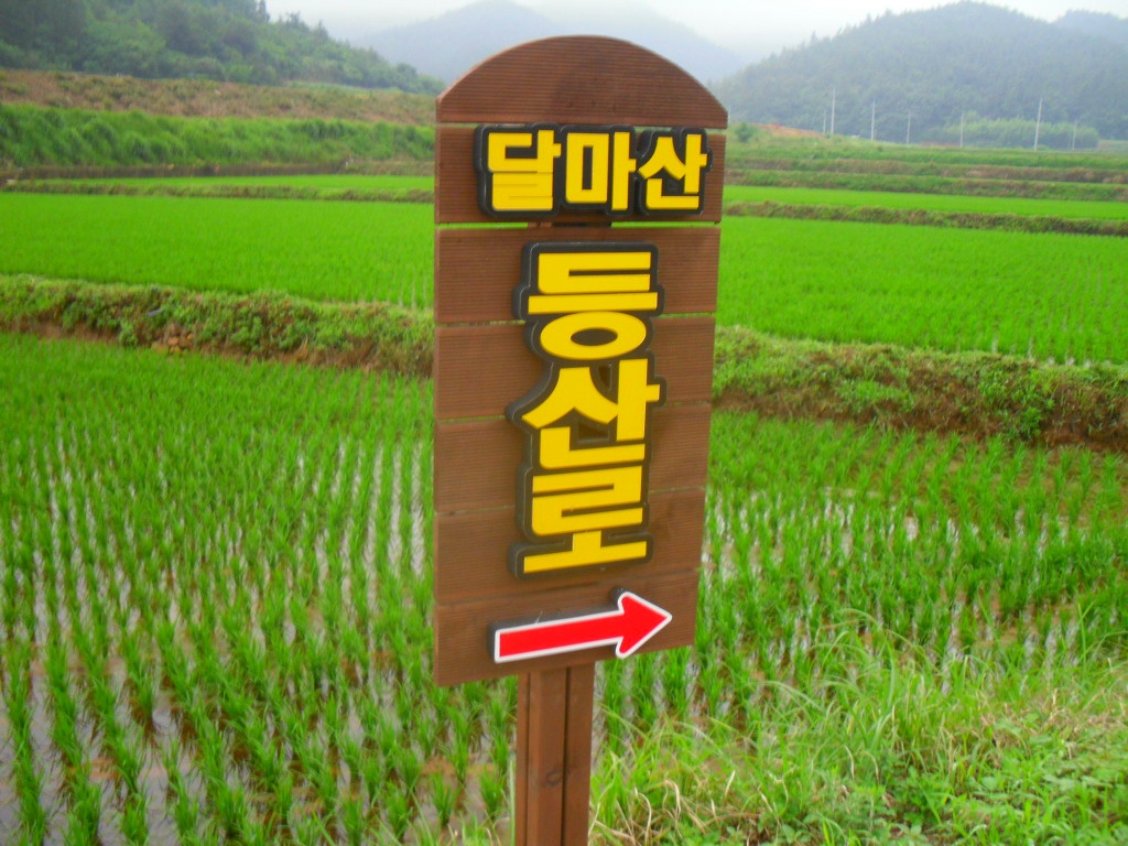 송촌마을에서 등산코스는 농로를 따라 걸어야 한다.