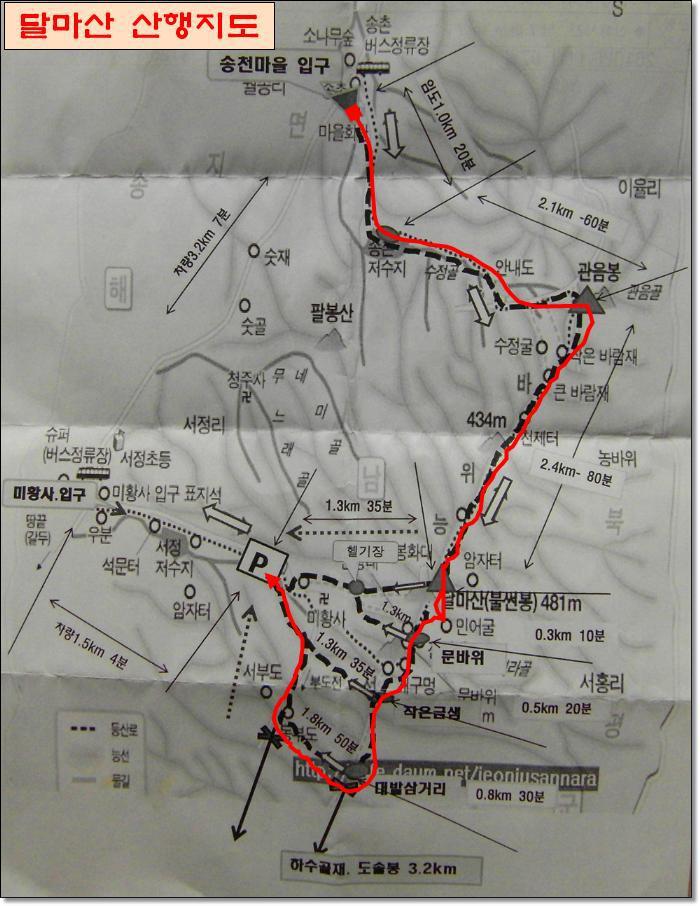 해발 489m로 높지 않고, 송촌에서 미황사로 내려오는 코스는 산행거리도 약 6㎞정도로 3시간 정도
