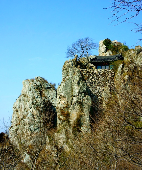 산 정상은 기암괴석이 들쭉날쭉 장식하고 있어 거대한 수석을 세워놓은 듯 수려하고
