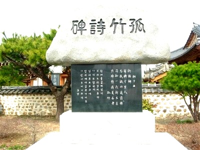 이 서있는데, 그 시비 앞면의 [孤竹詩碑]에는 홍랑의 [묏버들...] 시를 최경창이 漢譯한