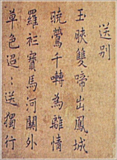 최경창은 떠나는 홍낭을 이별하면서 절절히 가슴을 오려내는 심정을 담아 [송별:送別]이라는 시를